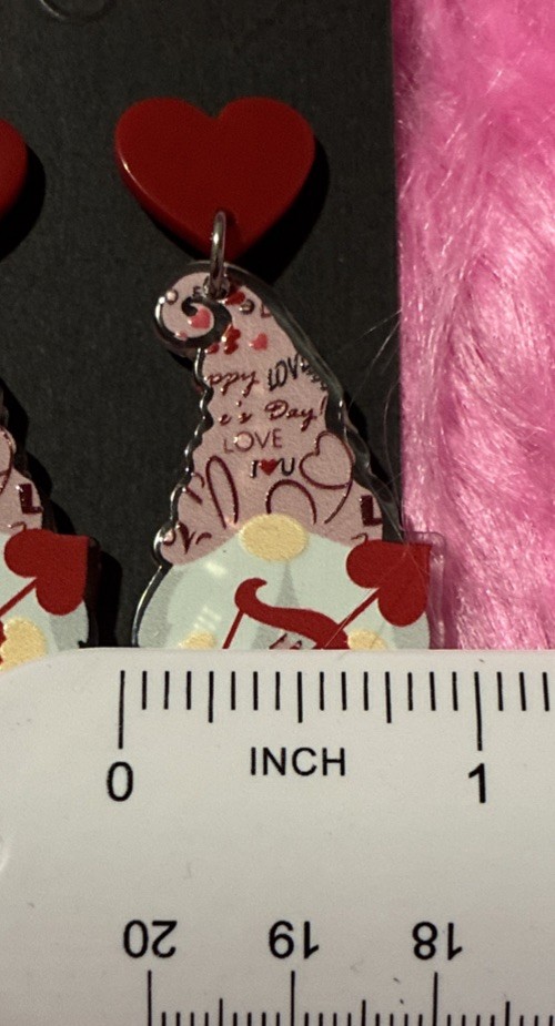 как выглядит Women s Festive Gnome Shaped Acrylic Earrings. Valentines, Lovers, Light Weight. фото