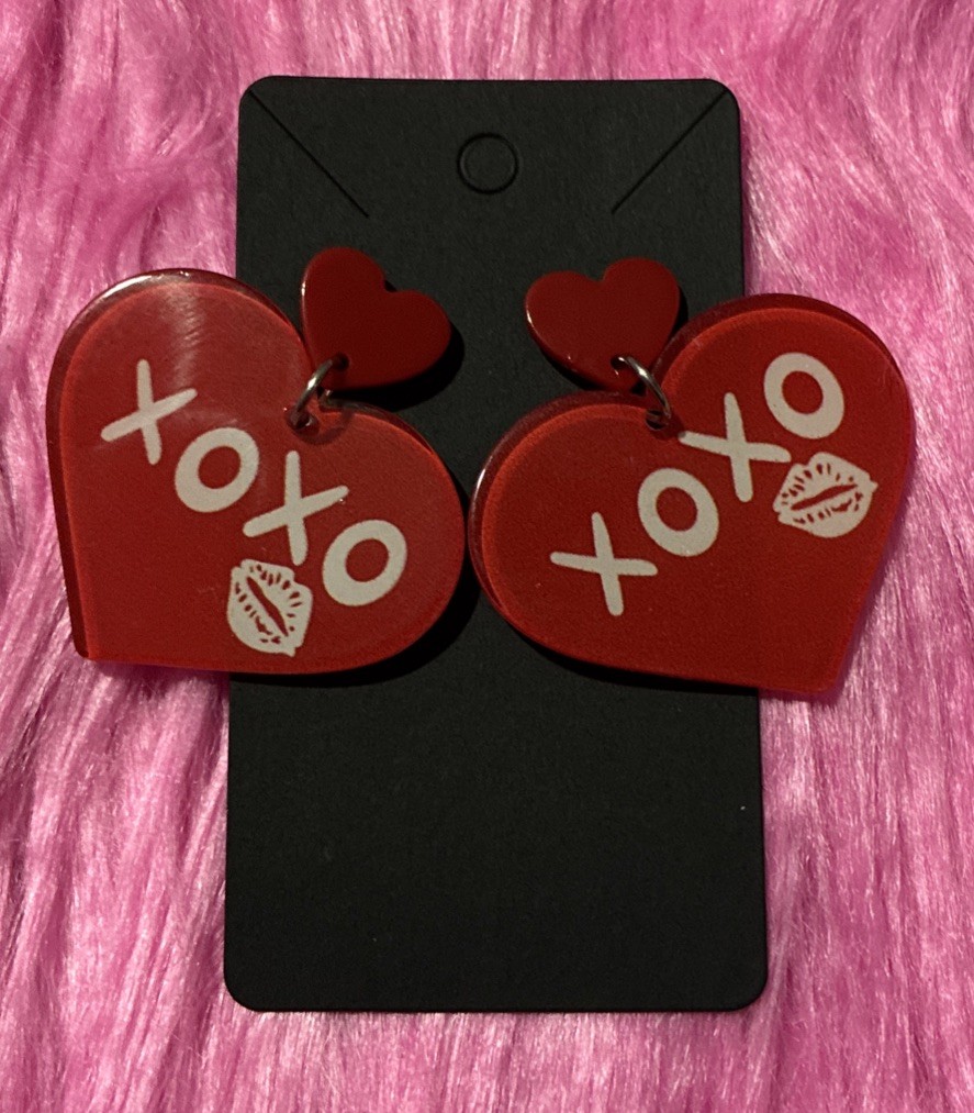 Women s Heart Shaped Acrylic Earrings. Valentine, Lovers, Light Weight. Festive