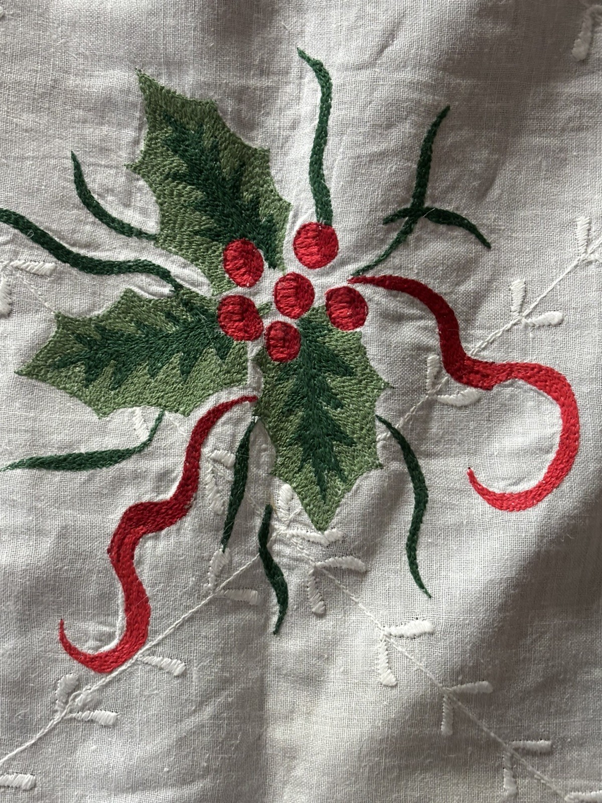 как выглядит Christmas Poinsettia 52" Linen Table Runner White Cream Gold Embroidered Free Sh фото