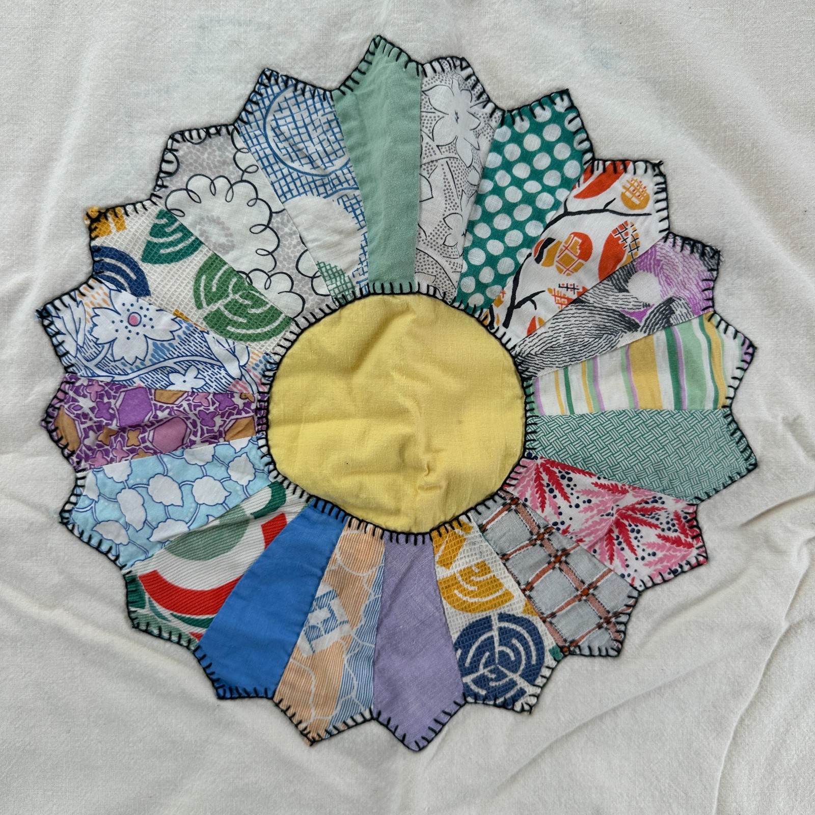 Vintage Grandmas Flower Hand Sewn Quilt Lap Blanket 39 X 89 Multicolor