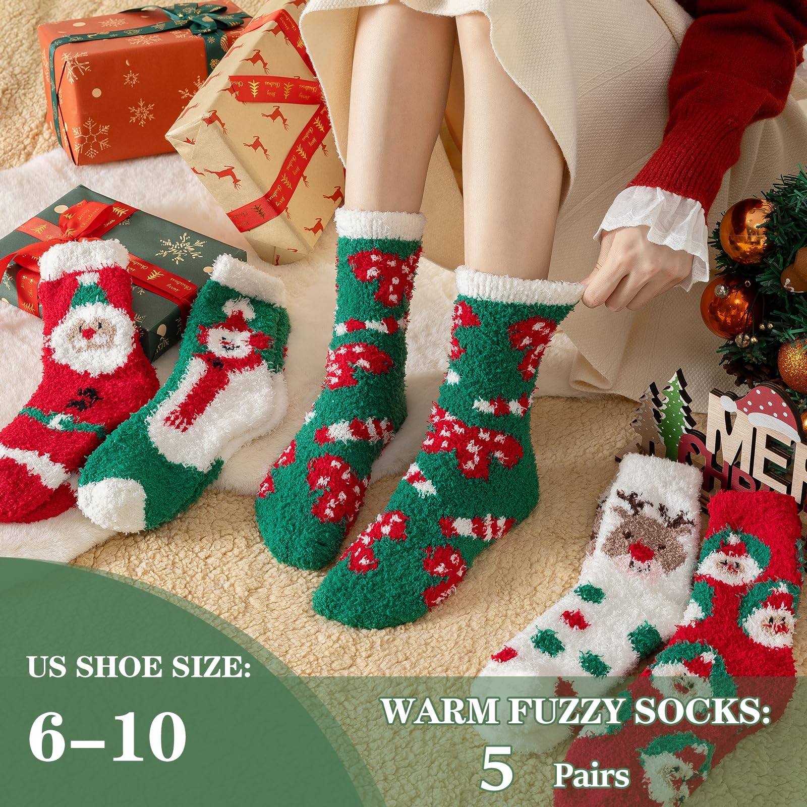 как выглядит Fuzzy Socks for Women - Slipper Socks for Women 5 Pairs Christmas Cozy Sock f... фото