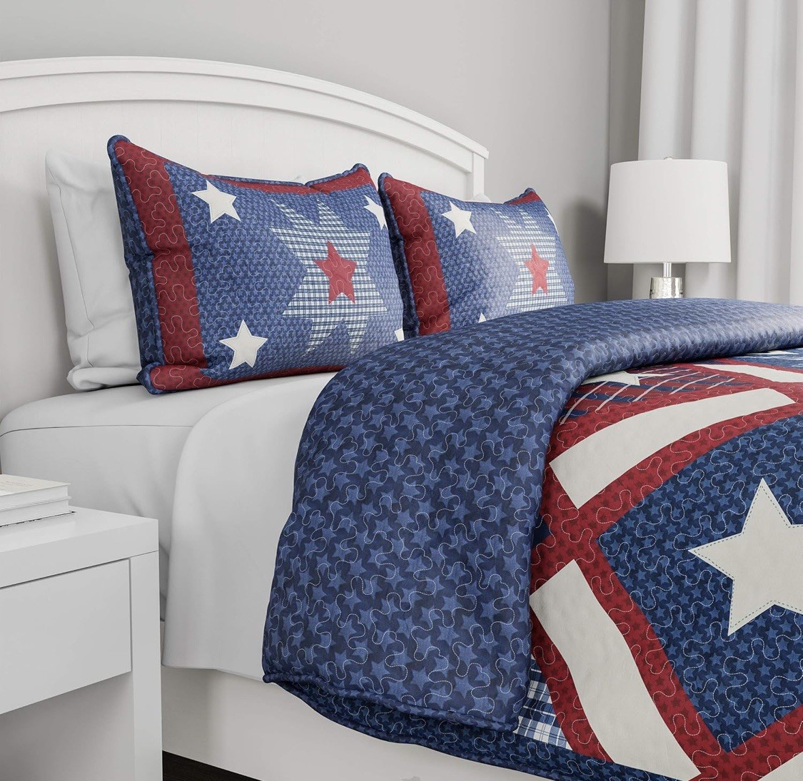 NEW 3-Piece Quilt Set Americana All-Season Blanket Sham King 66-Q001K