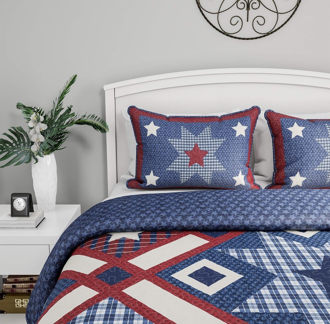 как выглядит NEW 3-Piece Quilt Set  Americana All-Season Blanket Sham King 66-Q001K фото