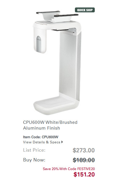 CPU600 Humanscale CPU Mount in Box NEW Silver/White
