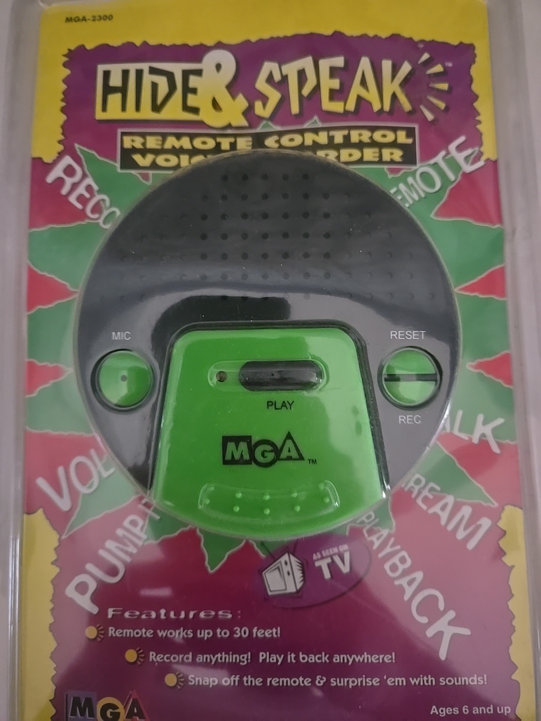 как выглядит vintage Hide Speak Remote Control Voice Recorder MGA Vintage 1996 NEW SEALED фото