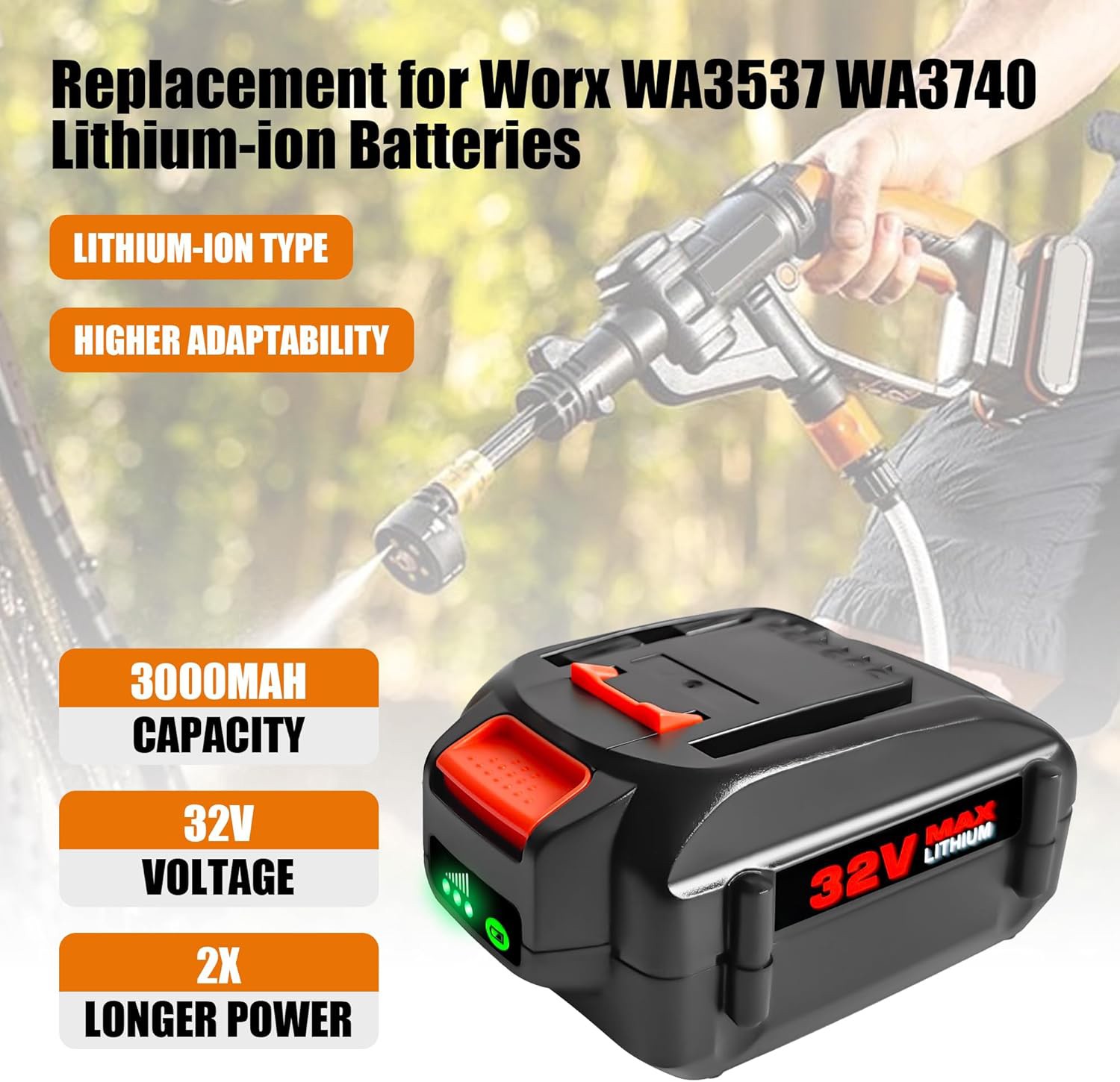 32V 3.0Ah Battery for Worx WA3537 Fits WG175 WG575 WG924