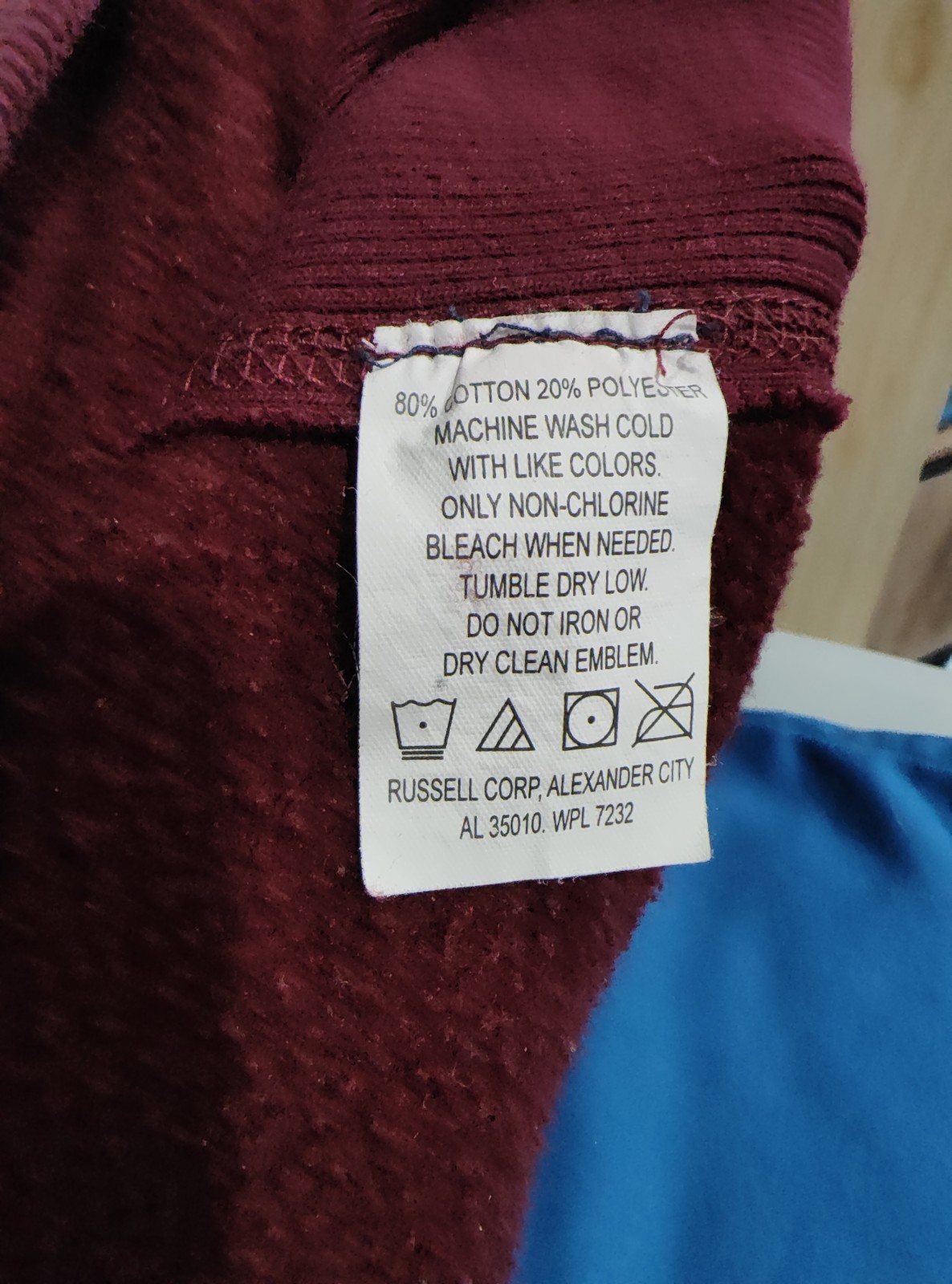 как выглядит Vintage Russell 1902 Single V Gussets Hoodie Burgundy Fits Lg фото