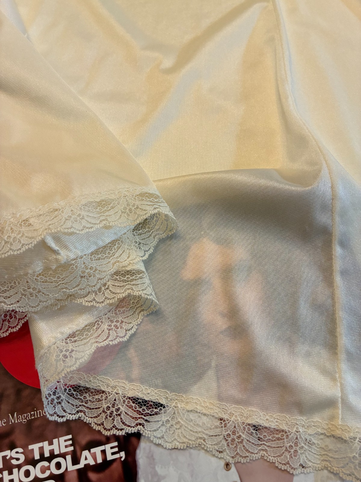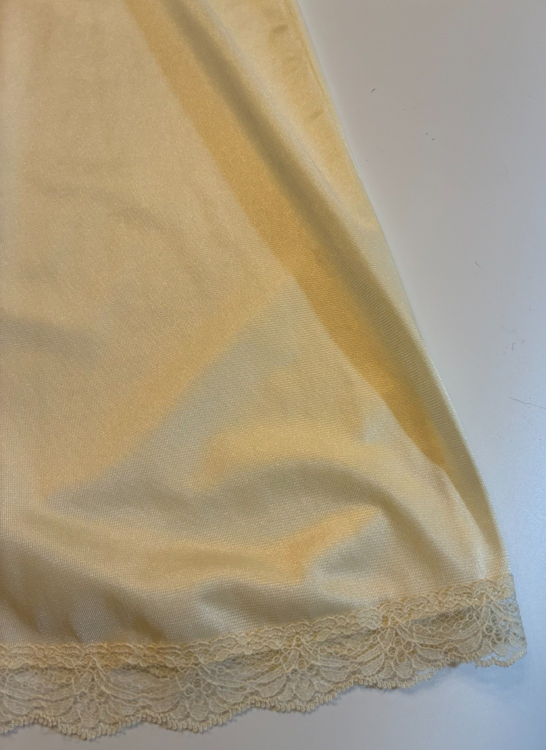 как выглядит Vtg IVORY Beige FULL SLIP Dress A-Line Medium LACE BUST Boudoir COQUETTE Femme фото