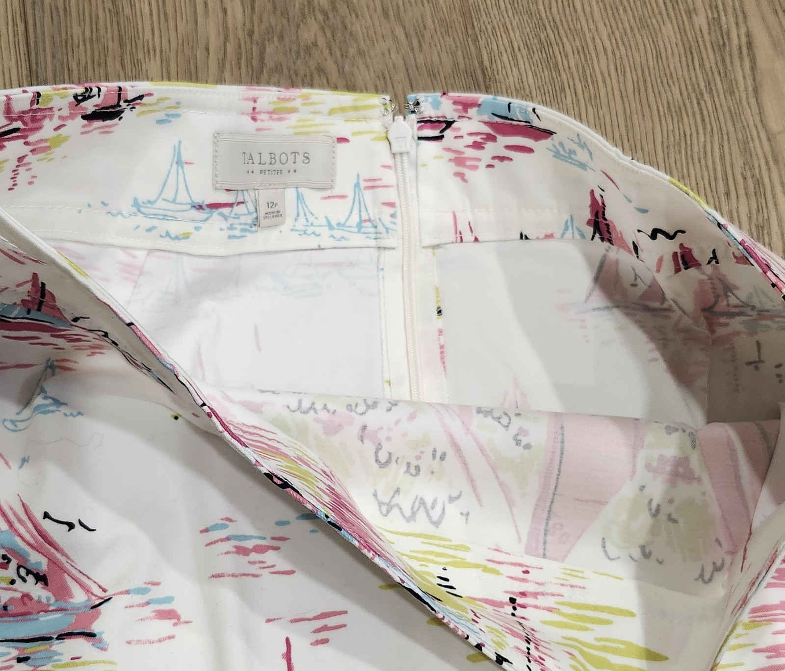 как выглядит Talbots 12P Skirt White Pink Sail Boat Nautical Preppy Beach Summer Vacation фото