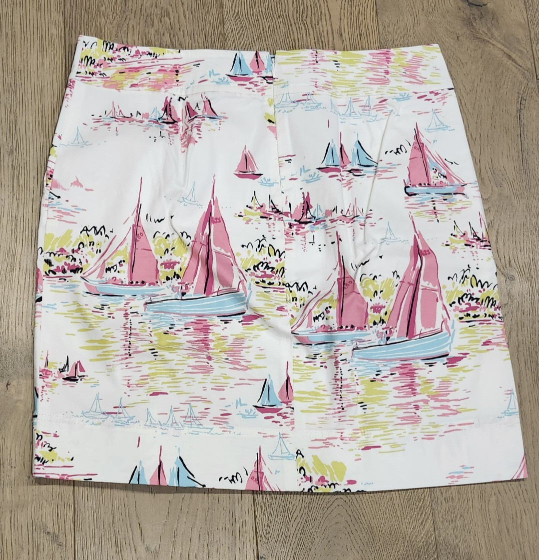 Talbots 12P Skirt White Pink Sail Boat Nautical Preppy Beach Summer Vacation