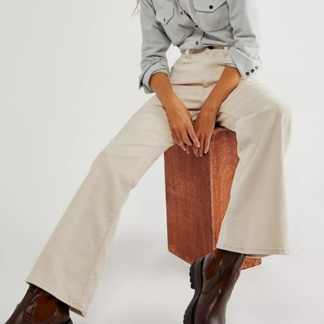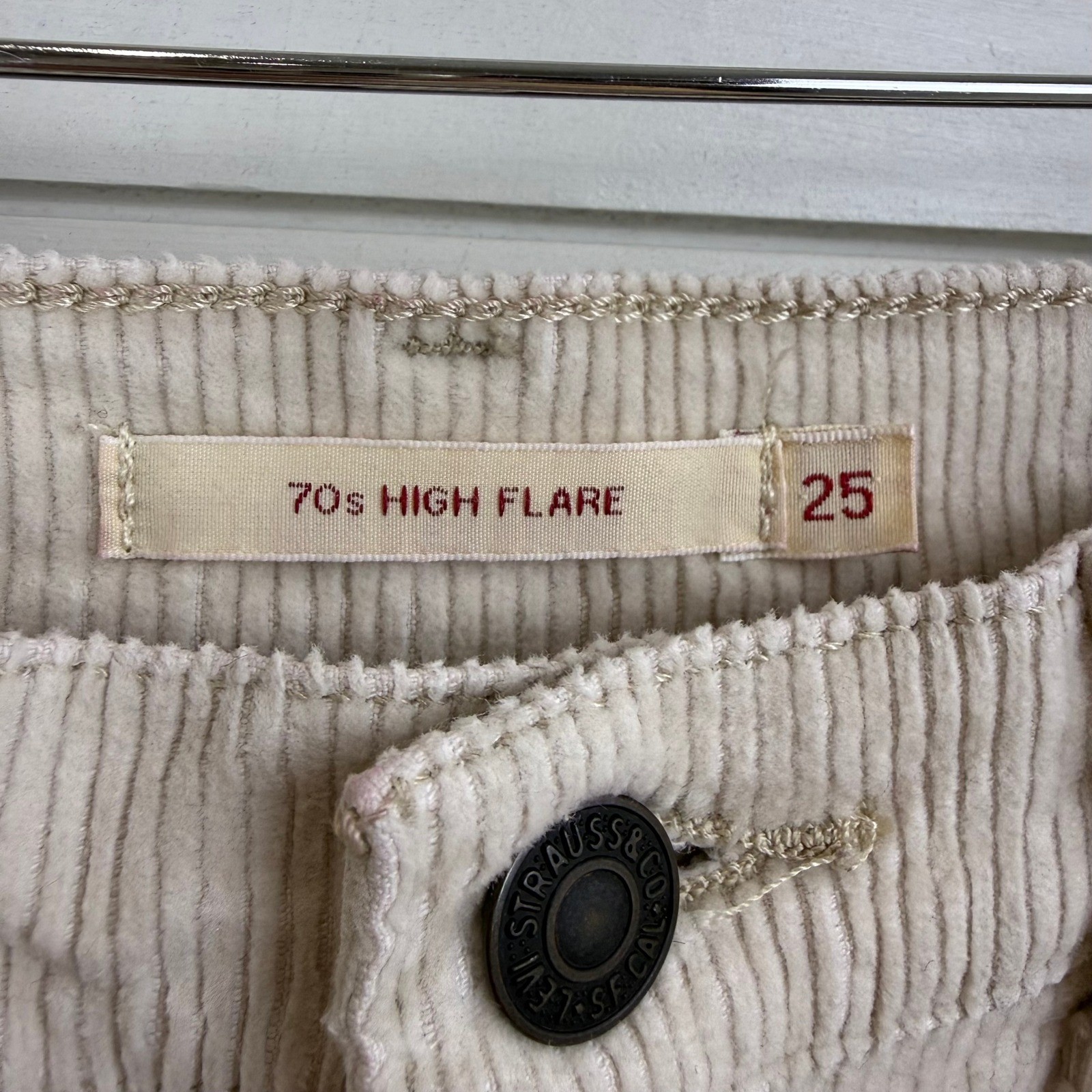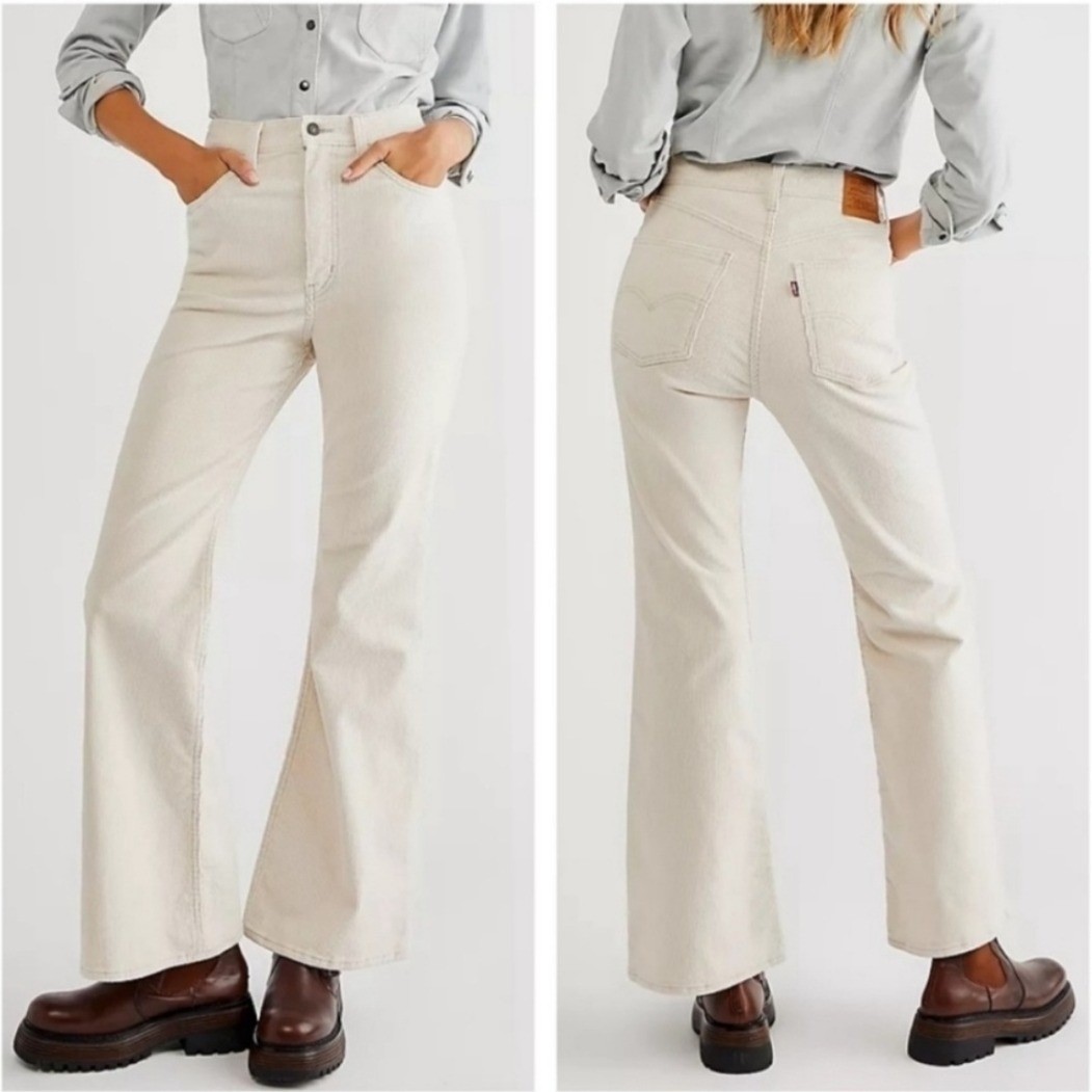 как выглядит Levis PREMIUM 70s High RISE Flare WALE SMOOTH Corduroy Pants SANDSHELL WOMEN 25 фото