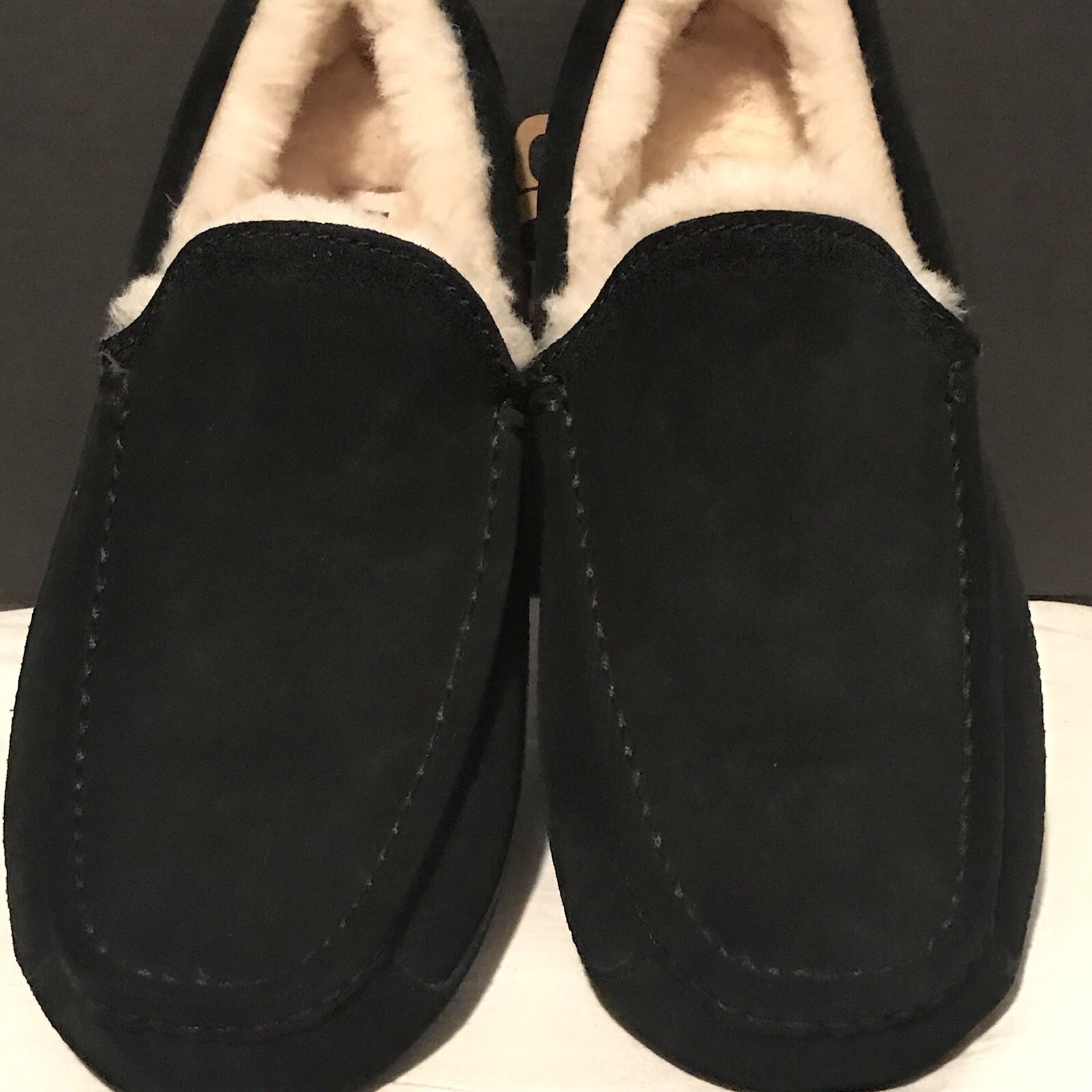 NEW UGG Men s Size 11 M Ascot Slippers Black Suede 1101110 Wool Lined