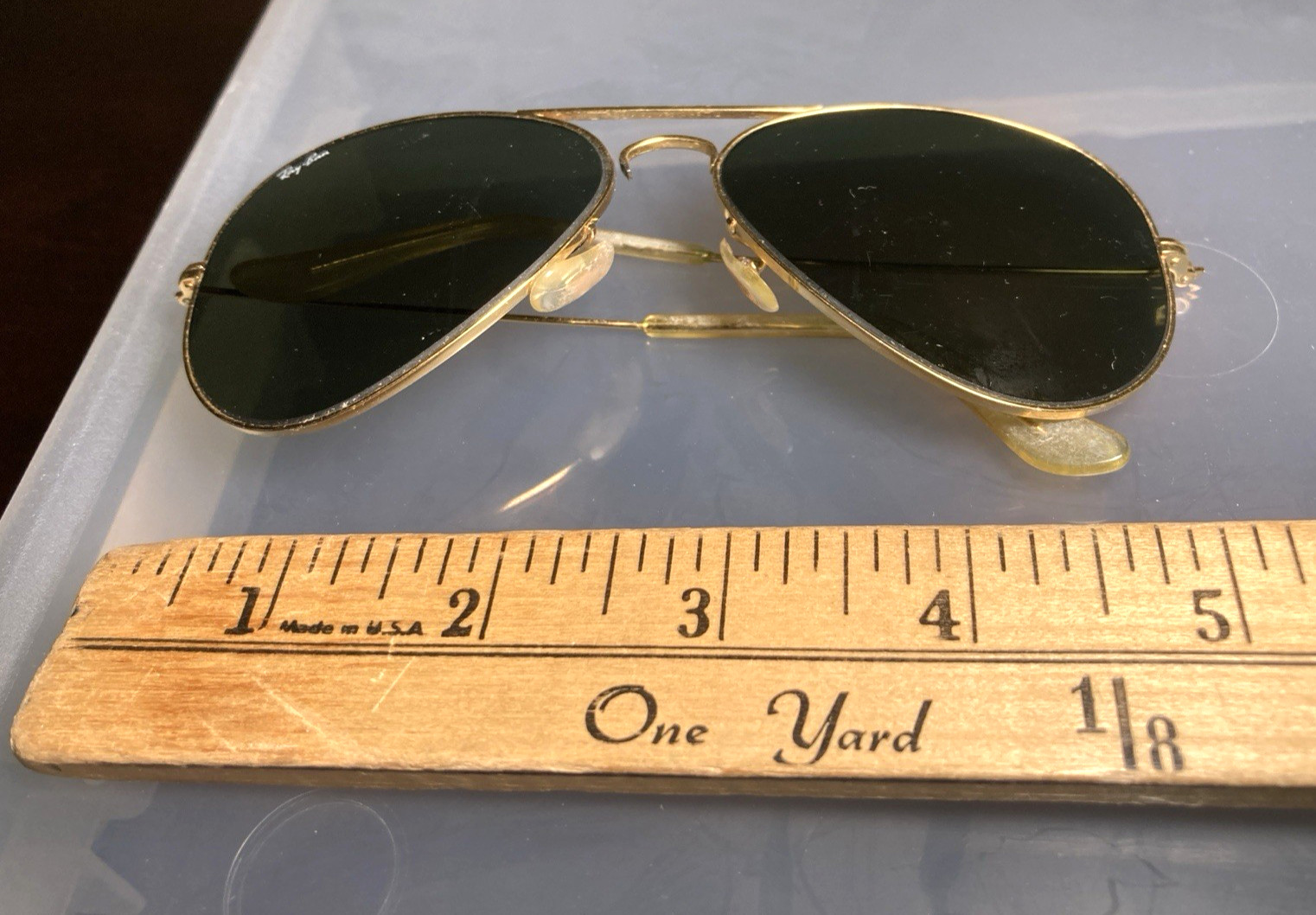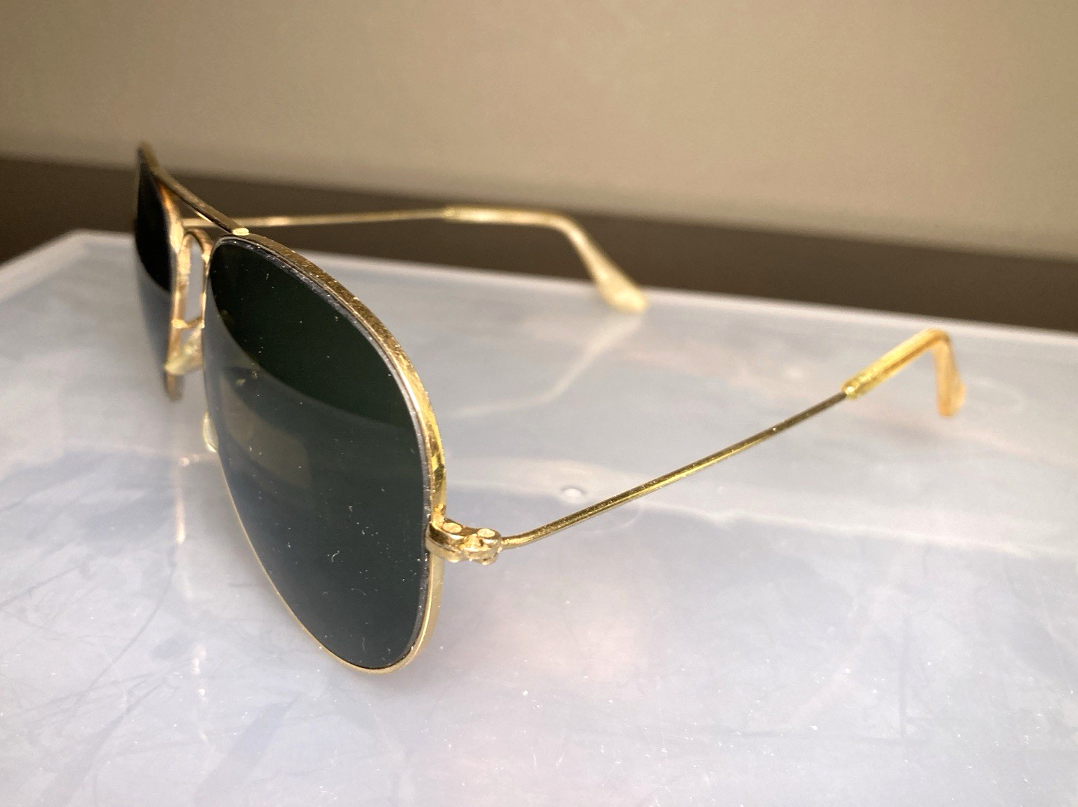 как выглядит Vintage 80s Ray Ban Aviator Sunglasses Bausch Lomb Gold Frame Black Lens USA фото