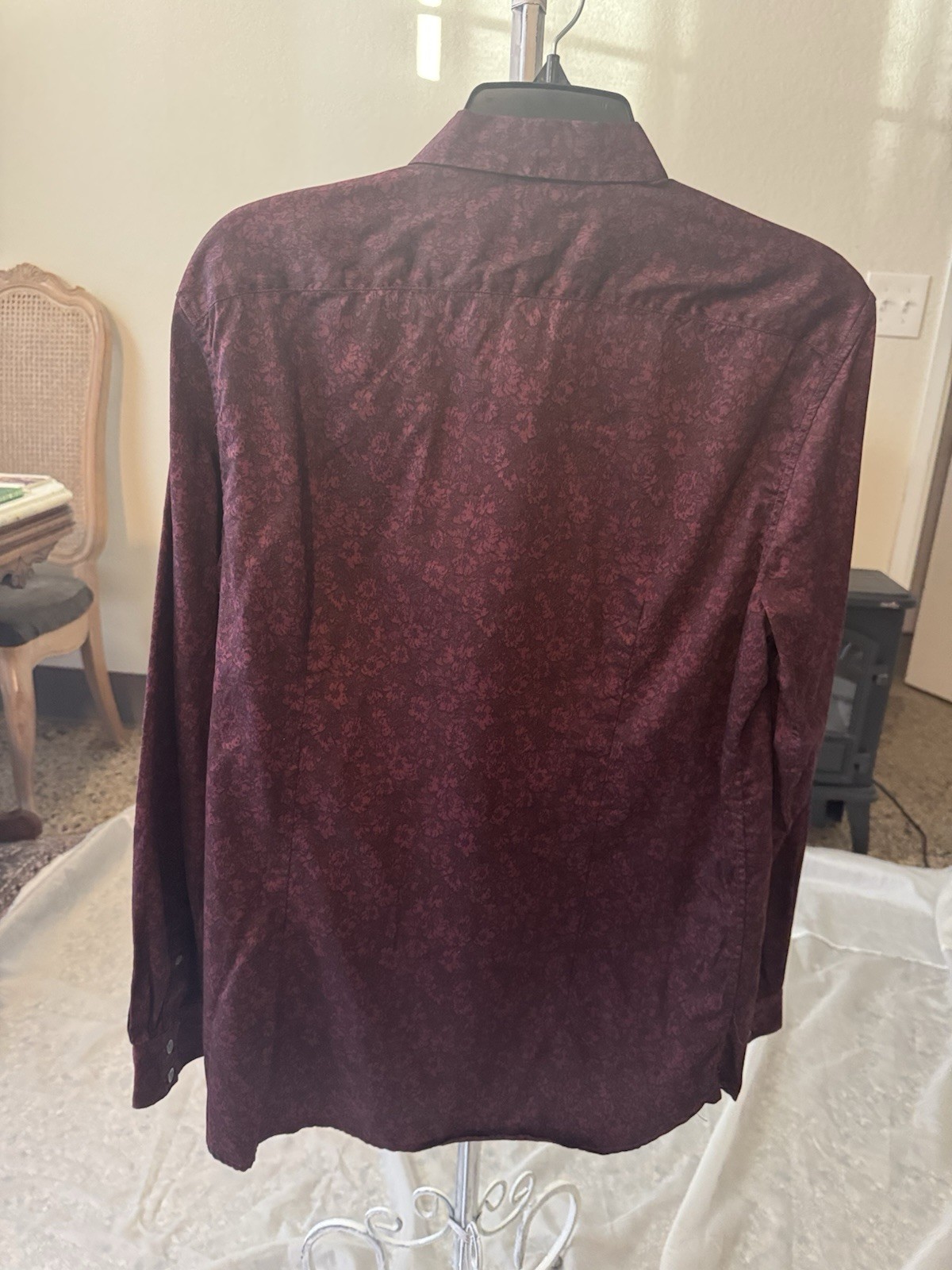 как выглядит John Varvatos Mens Ross Burgundy Red Button Down Shirt Sz M фото