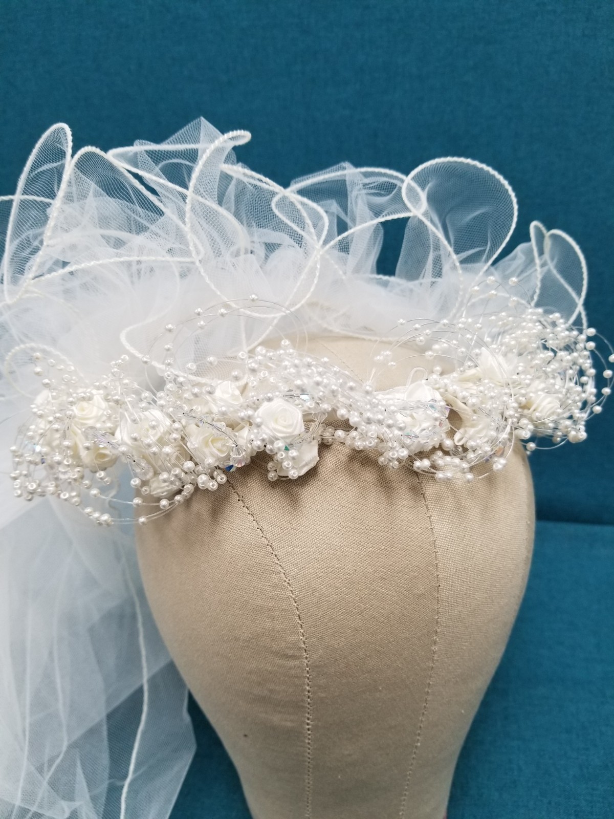 VTG Beaded Bouffant Wedding Veil Double Tier NO YELLOWING