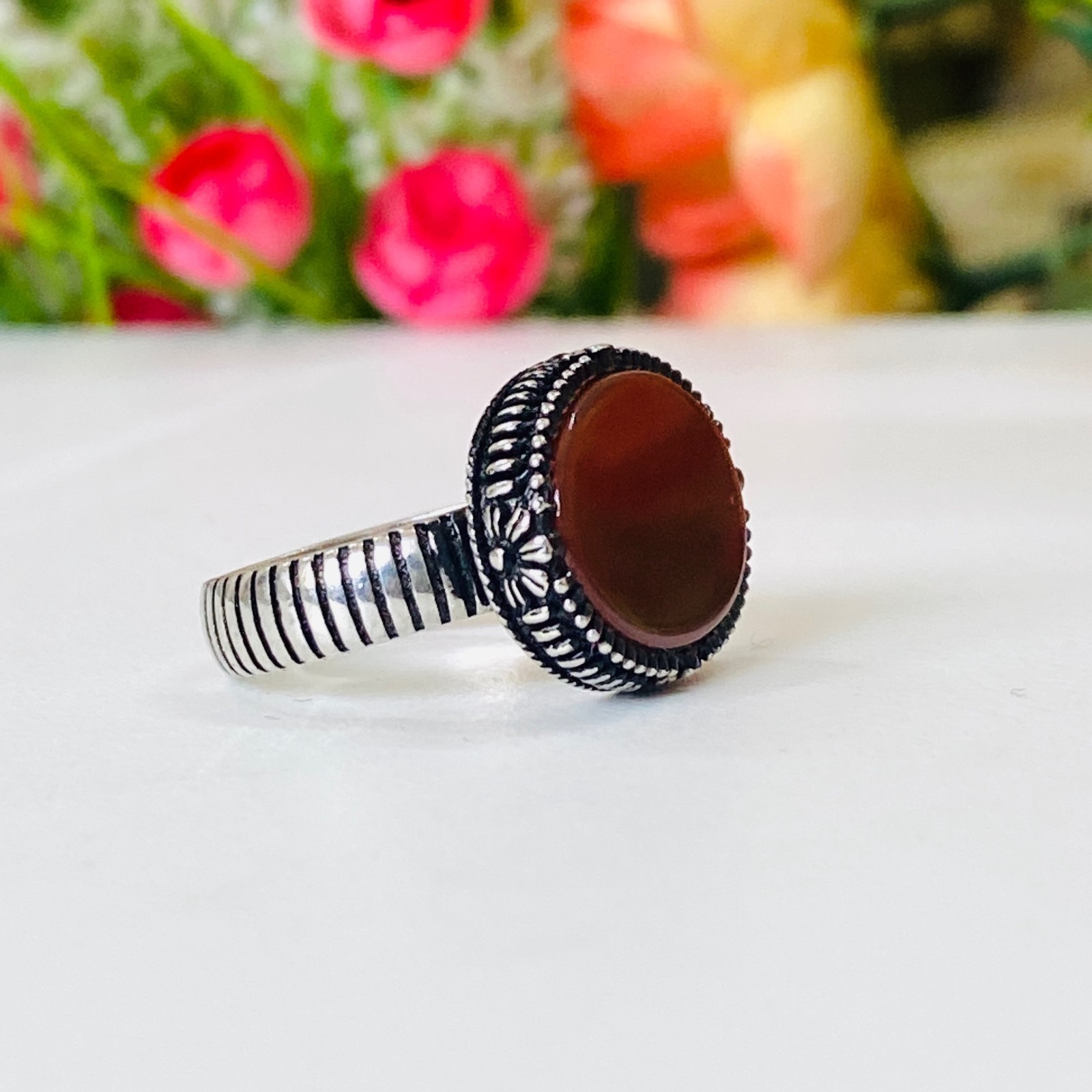 как выглядит Handmade Natural Red Agate Yemen Aqeeq Vintage 925 Sterling Silver Men Ring GEM фото