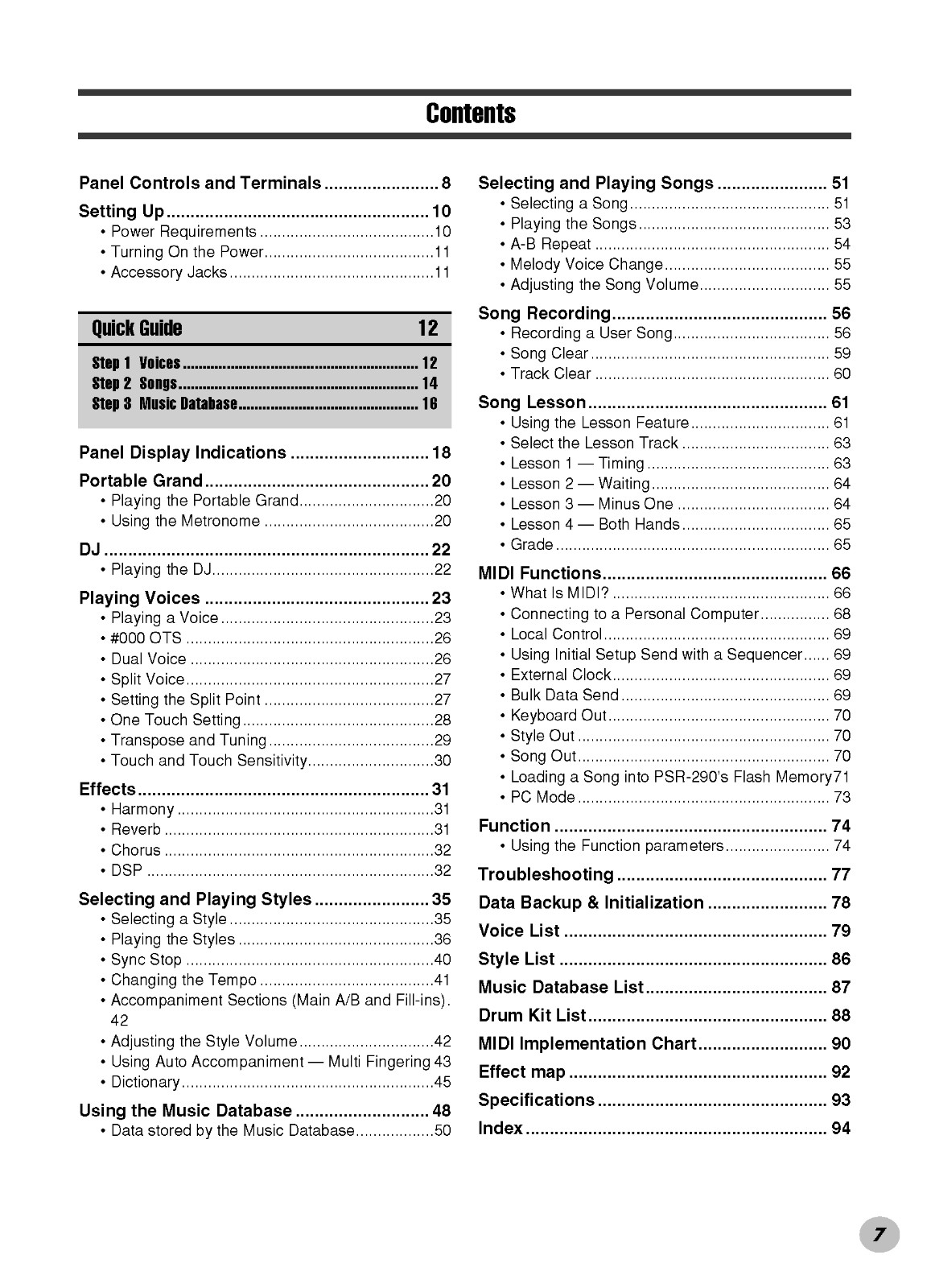 • Yamaha PSR-290 Instruction Manual: 98 Pages Protective Covers