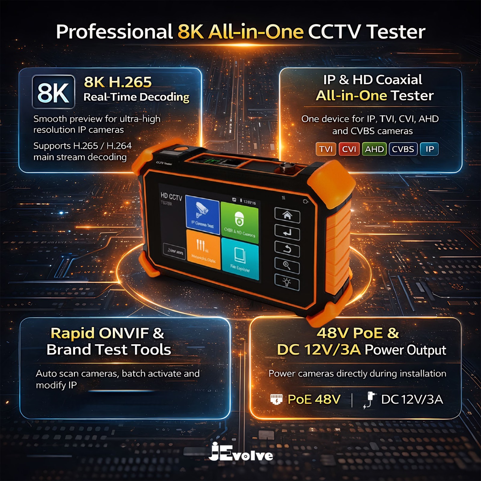 CCTV IP Camera Tester Monitor, 8MP AHD CVI TVI CVBS IP Camera Test 8K HD Display