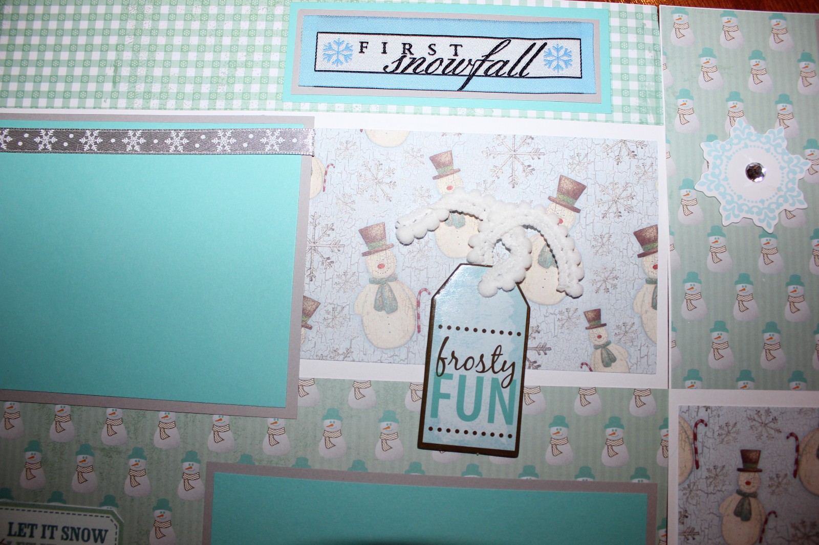 Snow scrapbook pages 2 each 12 x 12 handmade assembled premade Winter pages