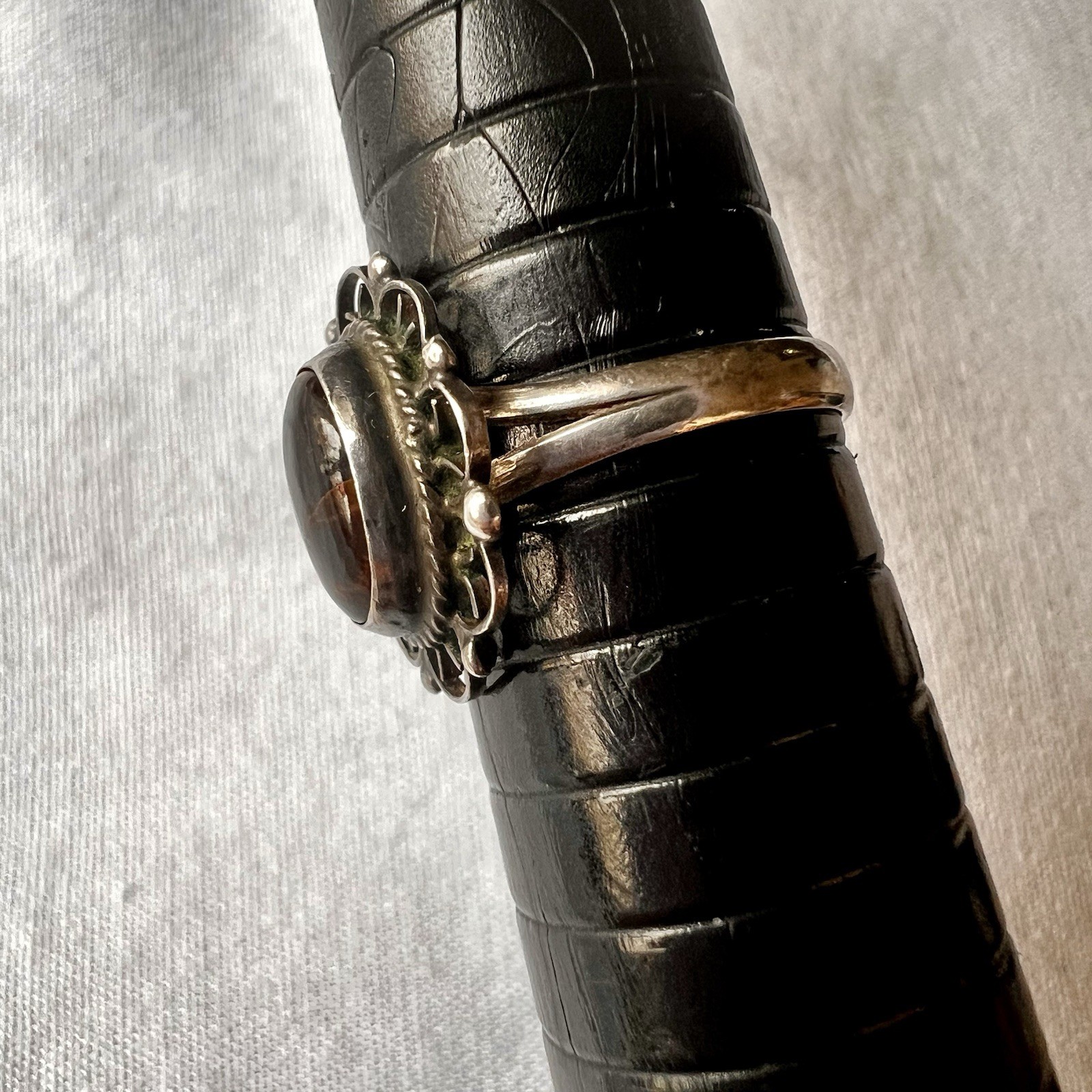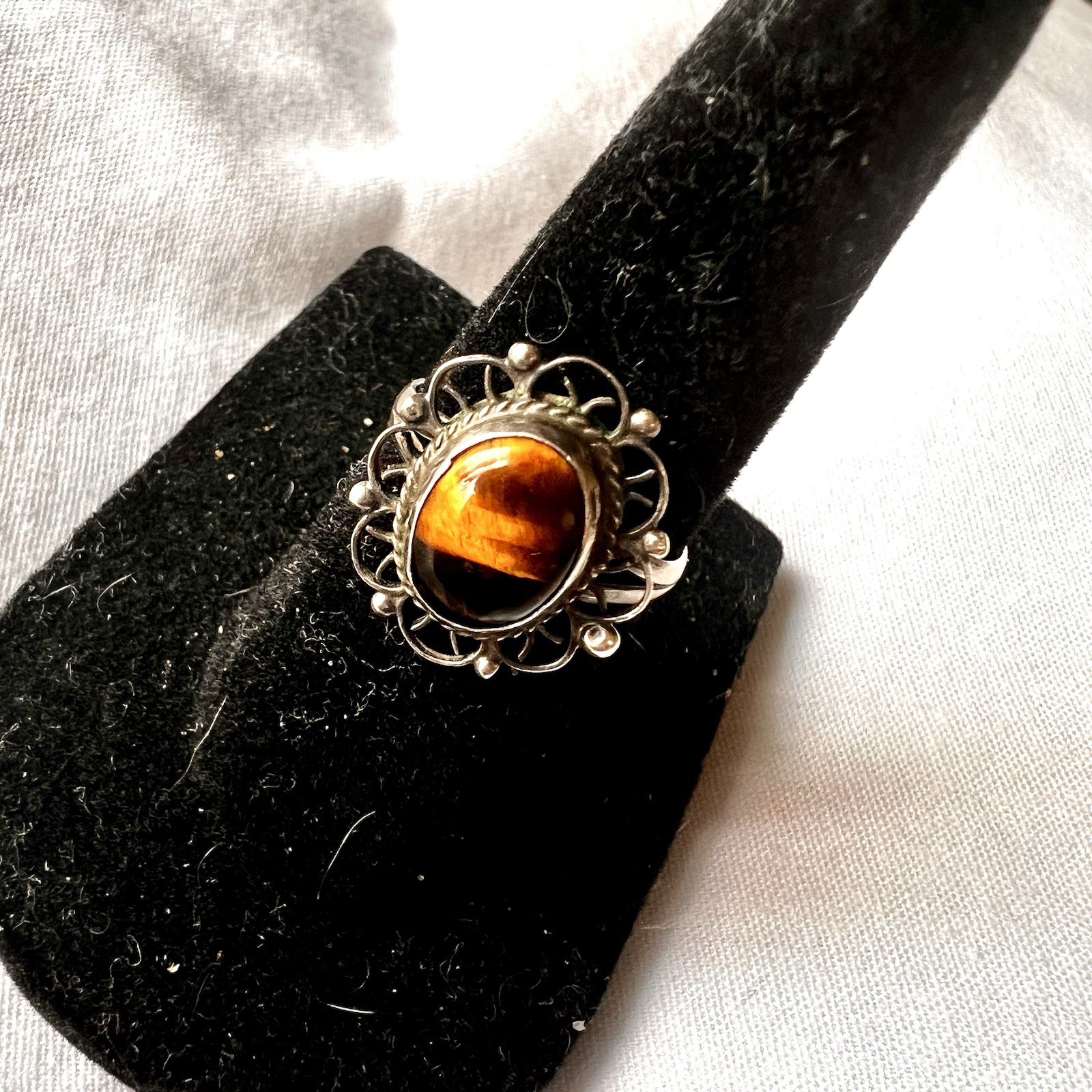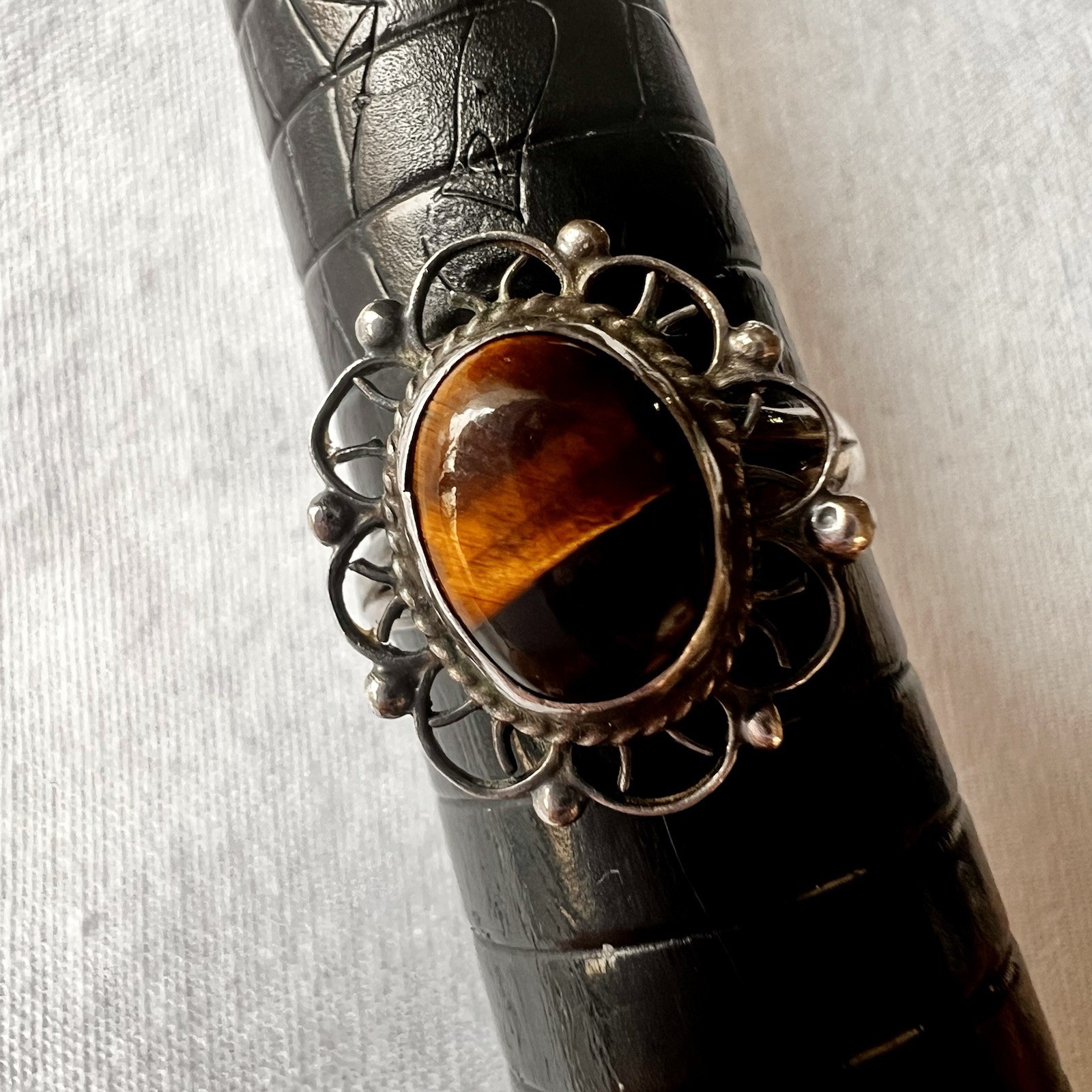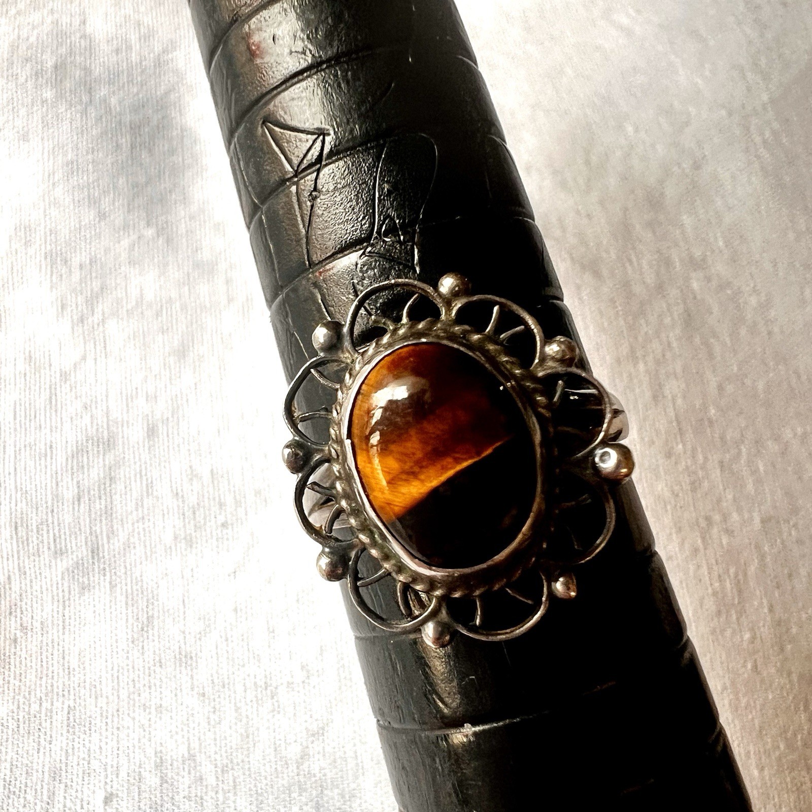 Genuine Tigers Eye Cabochon 925 Sterling Silver Ring Delicate Filigree Detail