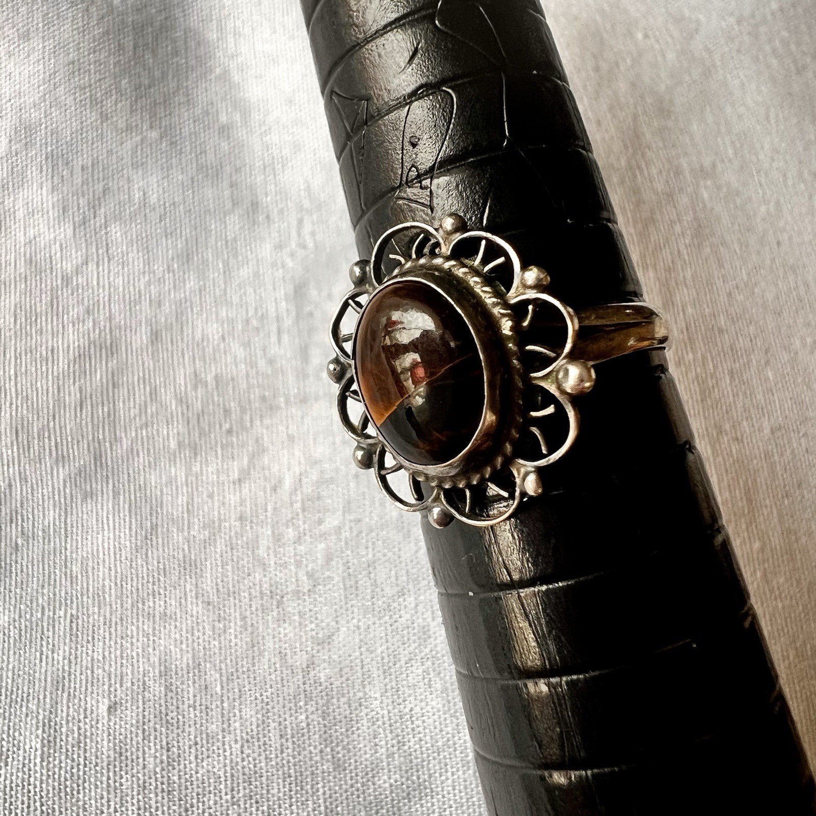 как выглядит Genuine Tigers Eye Cabochon 925 Sterling Silver Ring Delicate Filigree Detail фото