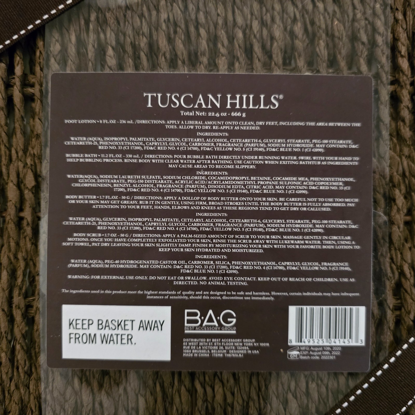 Tuscan Hills Vanilla Almond Bath Gift Set Body Scrub Butter Slippers Wash Spong