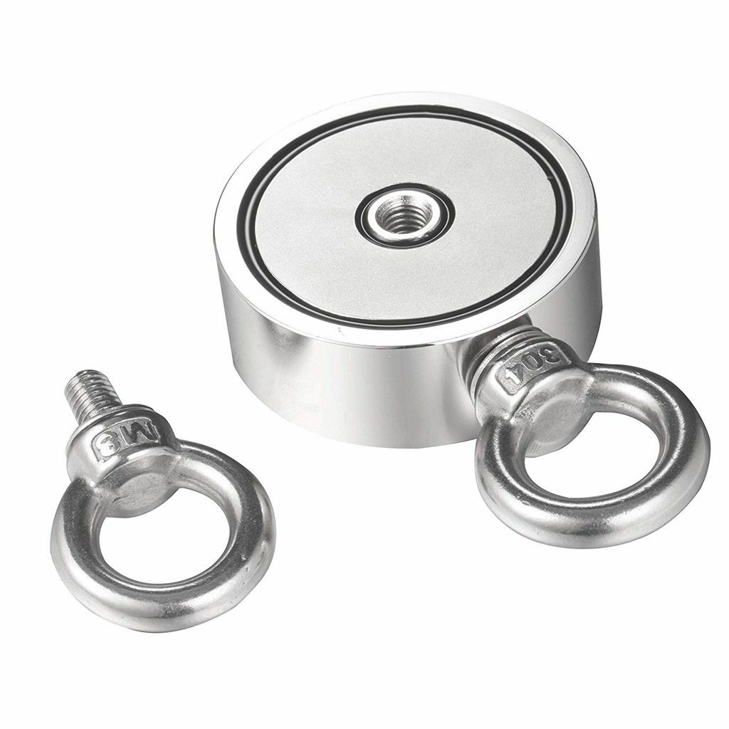 • 1000LBS Round Double Sided Strong Fishing Magnets Neodymium Pulling Force US