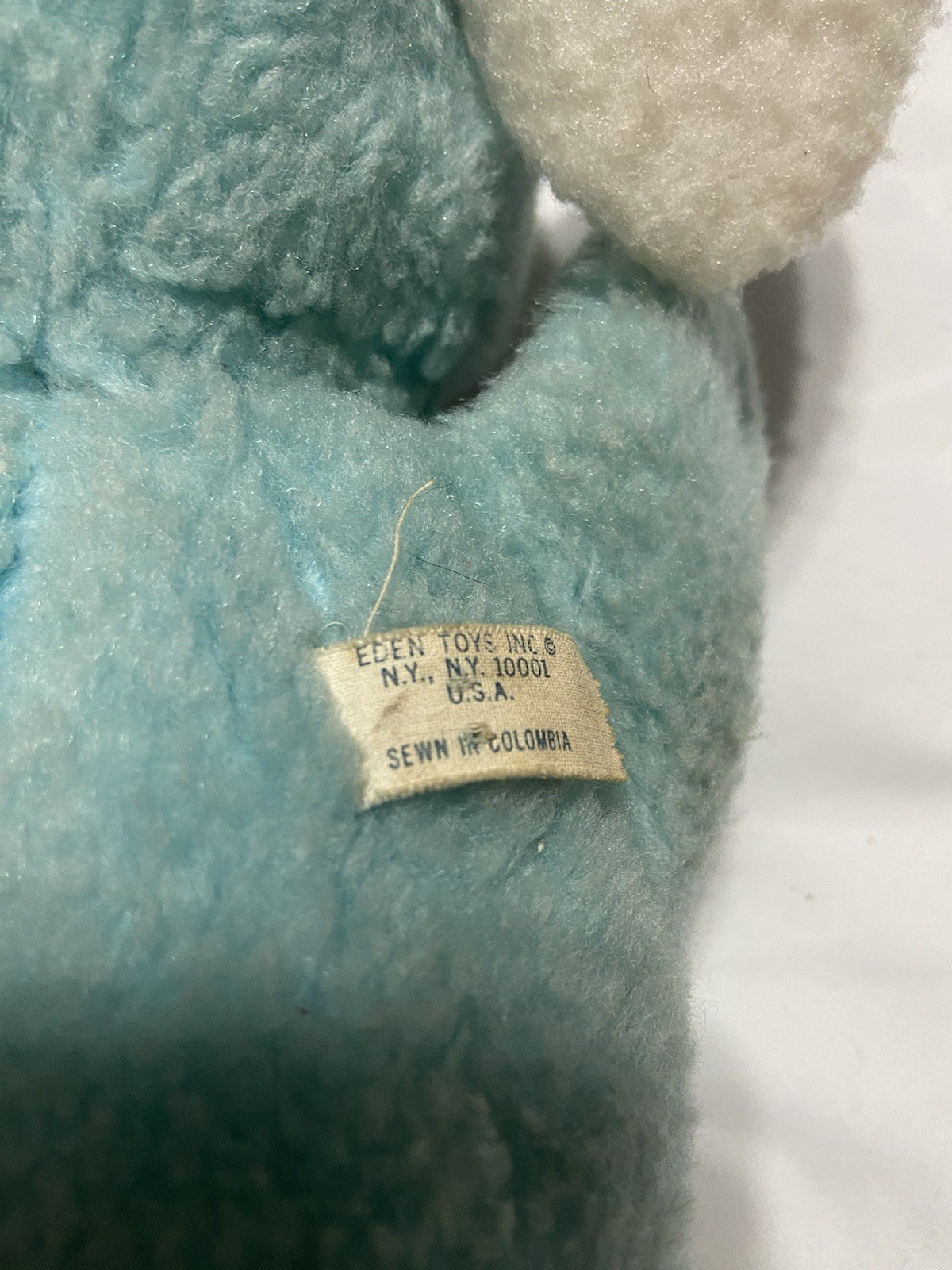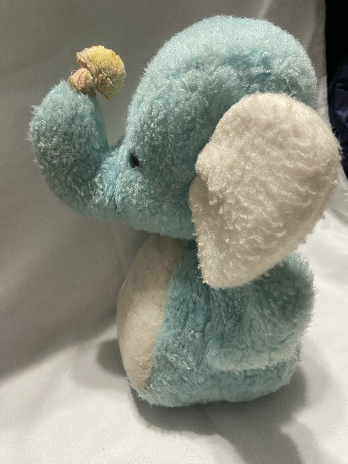 как выглядит Vintage 1970 s Rare Eden Toys Blue Stuffed Elephant Rattle Plush Animal Toy фото