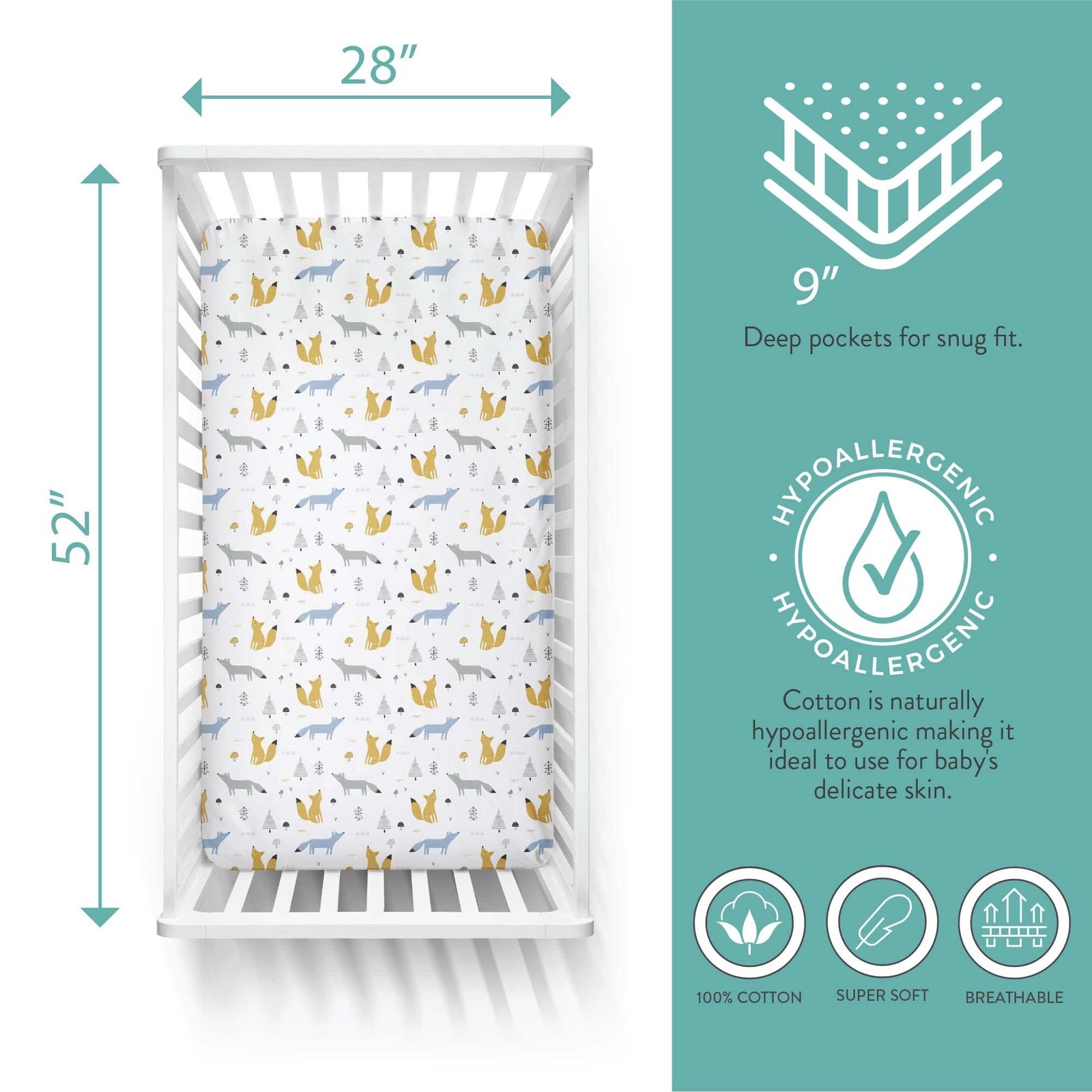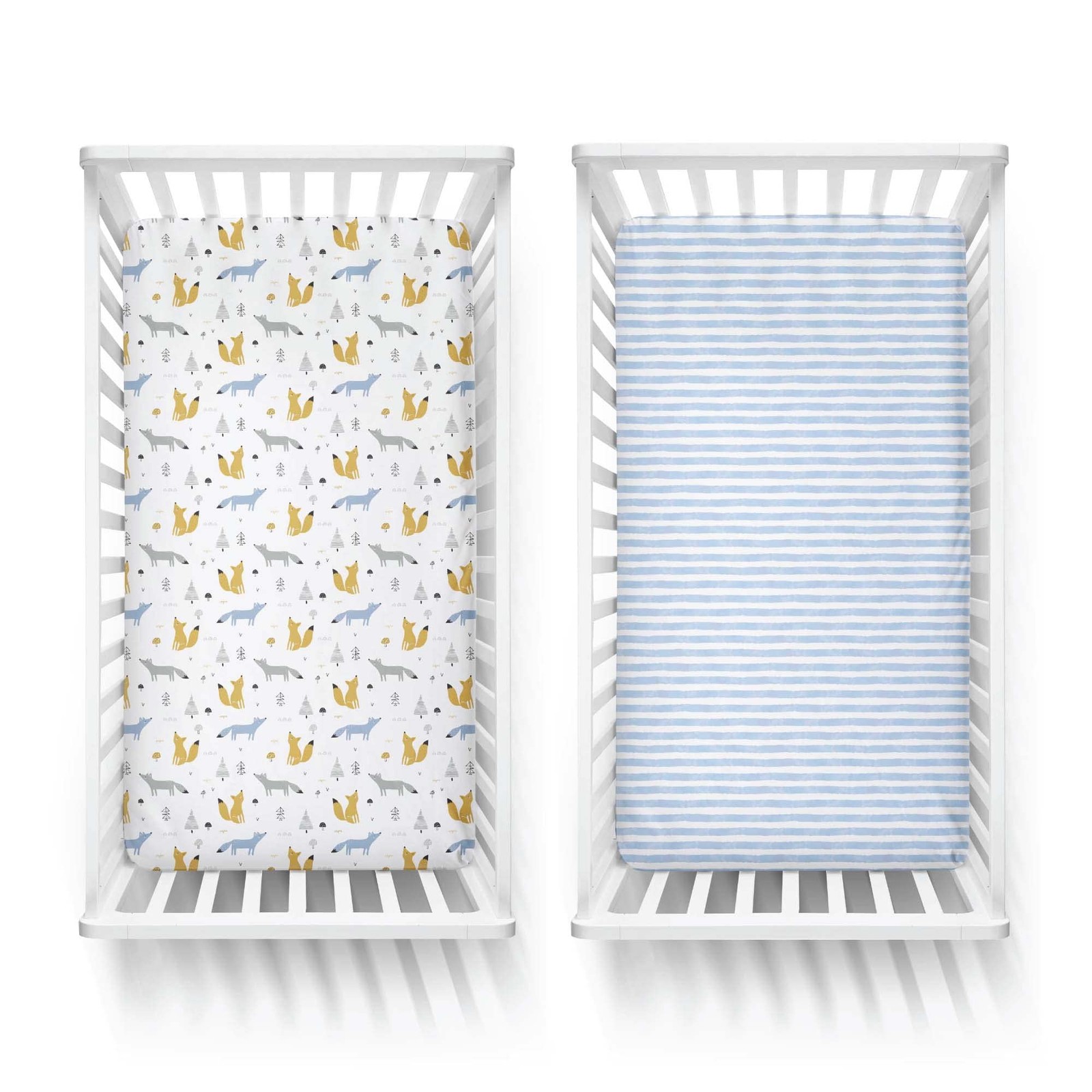 Featherhead 2-Pack Fitted Crib Sheets 100 Cotton 52x28x9 Toddler Mattress