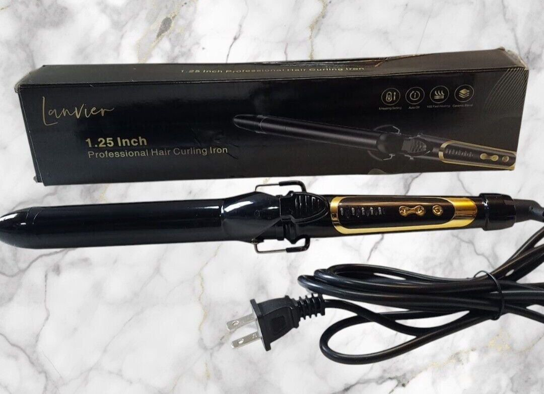 Lanvier 1.25 Inch Clipped Curling Iron Extra Long Tourmaline Ceramic Barrel New