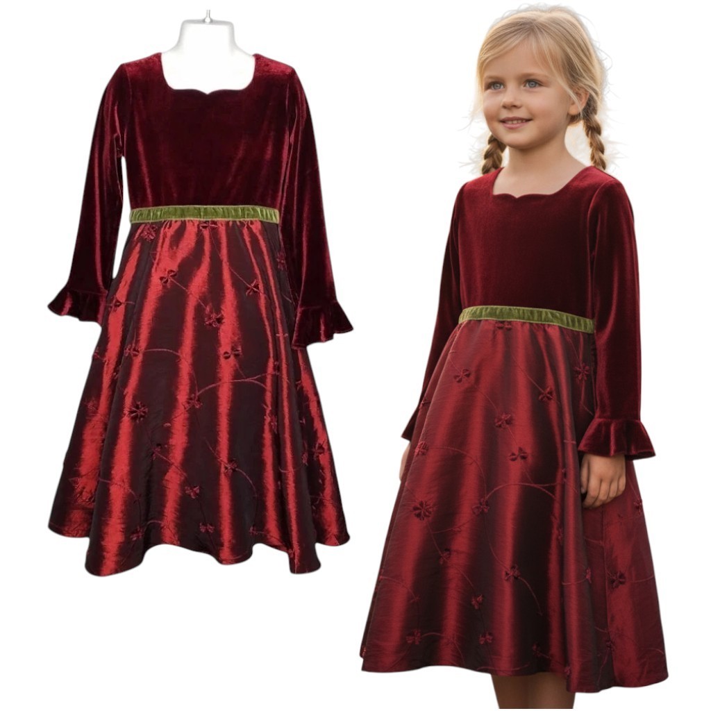 Burgundy Velvet Christmas Dress Girls Size Satin/Tulle Crinoline Jona Michelle
