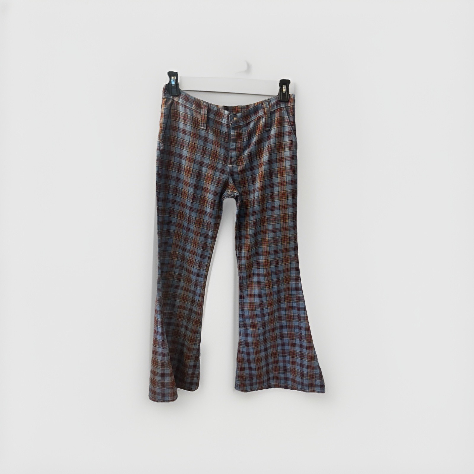 Vtg 70s MAVERICK HIGH WAISTED BELL BOTTOMS FLAIR PLAID Junior Sz 13 Hippie Boho