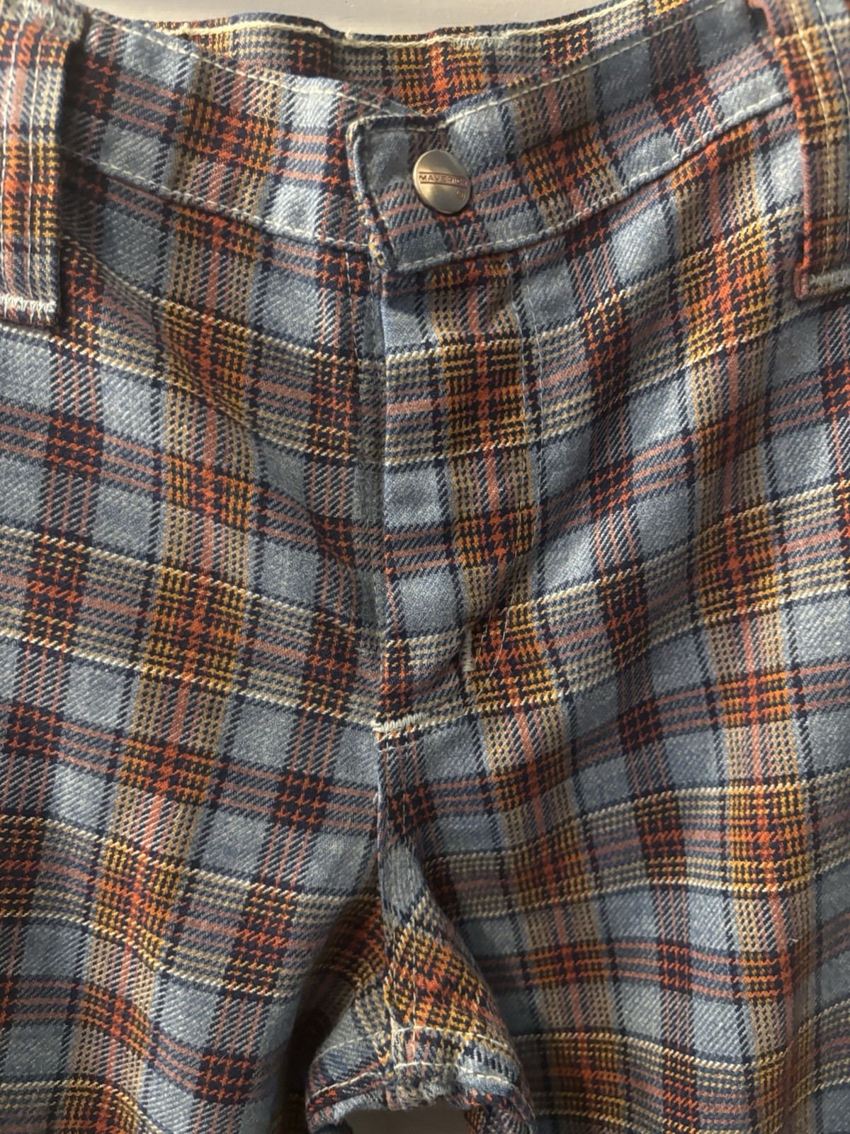 как выглядит Vtg 70s MAVERICK HIGH WAISTED BELL BOTTOMS FLAIR PLAID Junior Sz 13 Hippie Boho фото