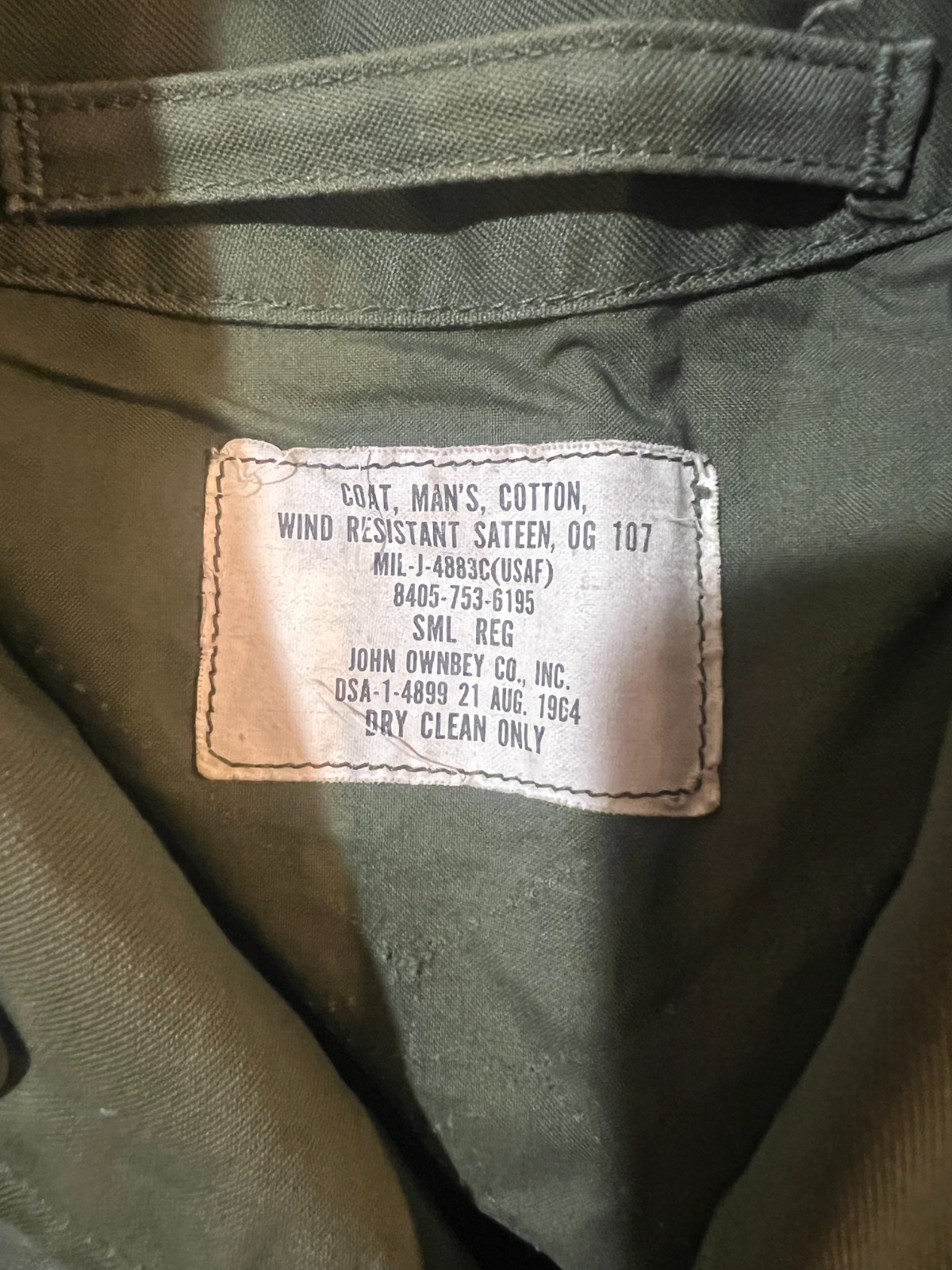 Vintage USAF Coat OG-107 60s Sateen Field Jacket USA 1964 Small Reg /John Ownbey