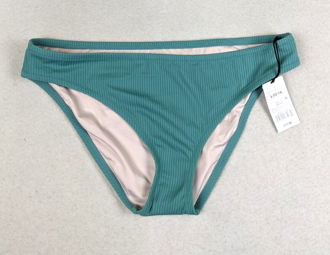 SHADE SHORE Women's Swimsuit Bottom Green Ribbed Medium Coverage Hipster Sz L