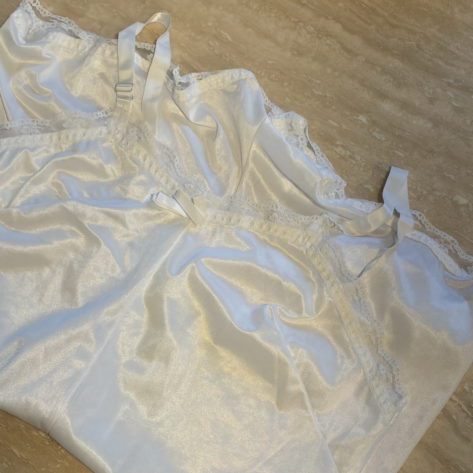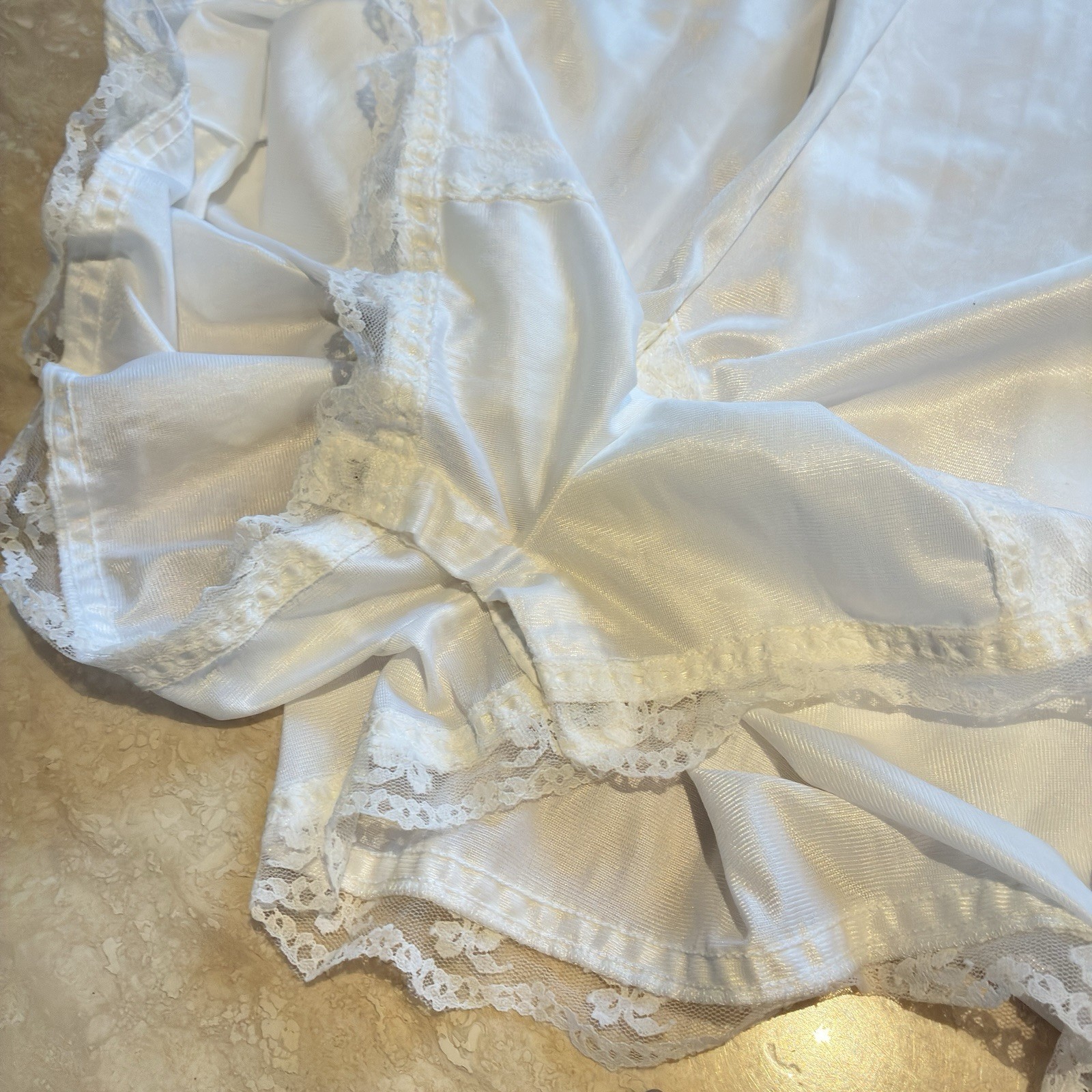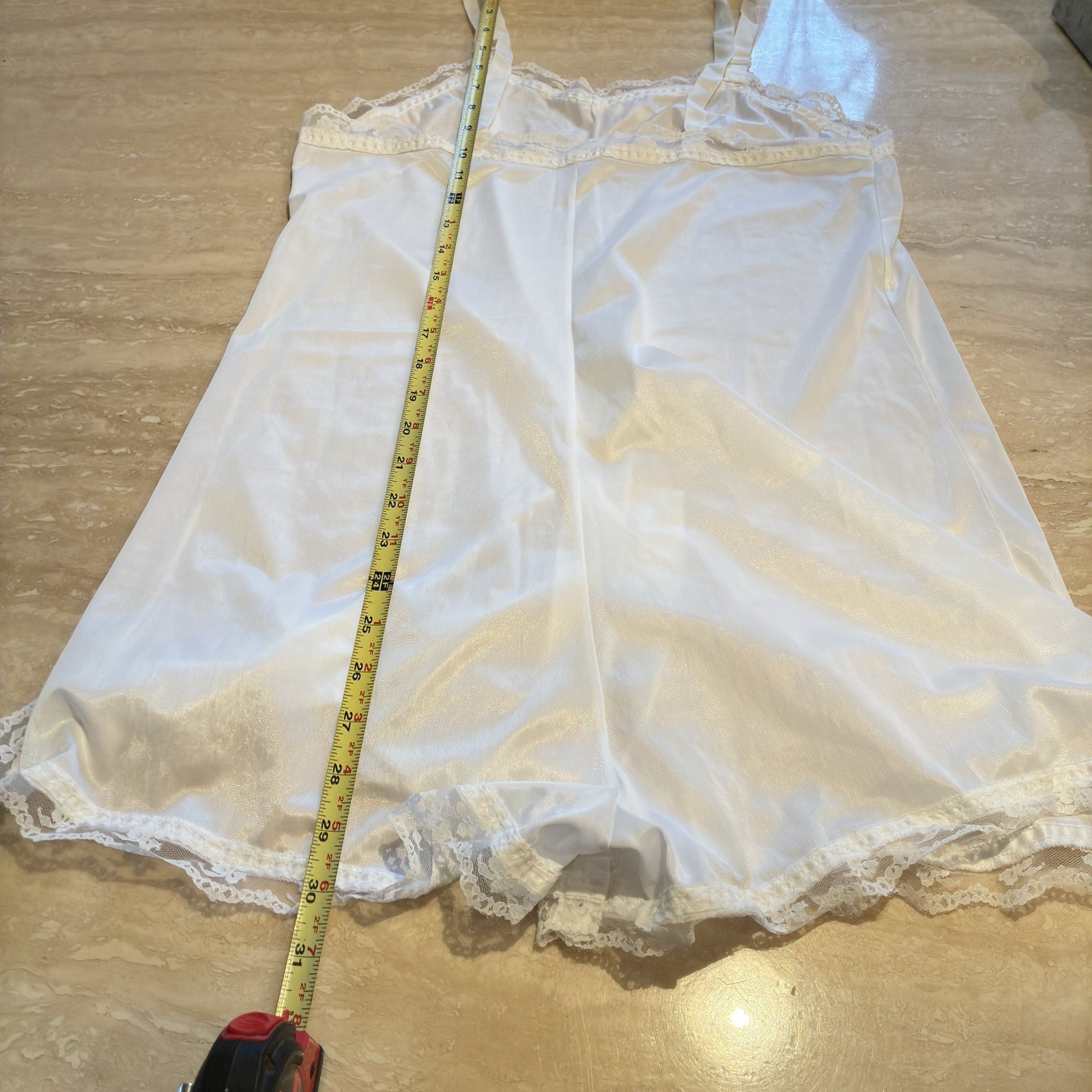 как выглядит Vintage Teddy Bodysuit Romper White Silky Nylon Lace Snap Lace Detail фото