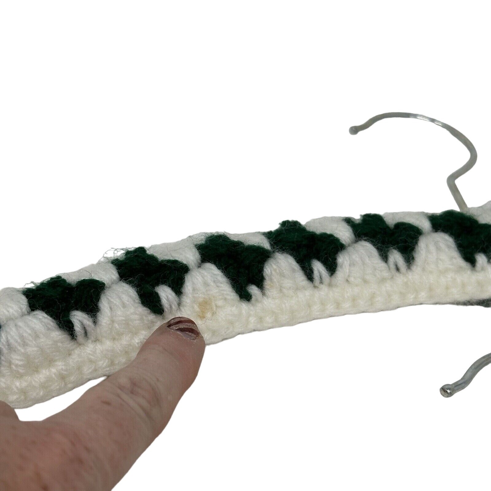 2 Vintage Handmade Crochet Clothes Hangers Yarn Covered Cottage Core Green White