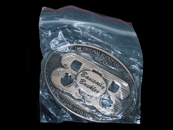 TG03110 NOS BASICALLY BUCKLES COLLECTORS MAGAZINE SOLID BRONZE BELT BUCKLE