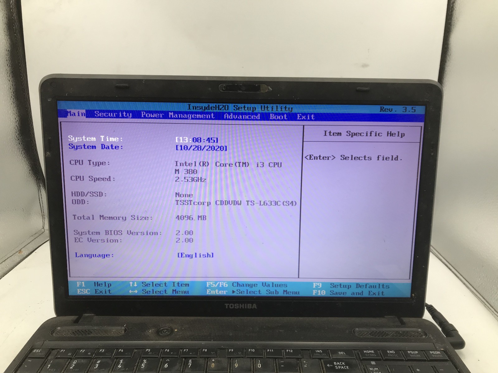 TOSHIBA SATELLITE C655 S5128 - BOOTS TO BIOS - INTEL I3 M380 - 4GB RAM -READ- BB