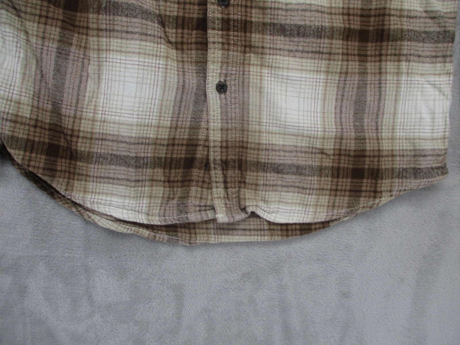 как выглядит George Shirt Mens Small Brown Beige Plaid Flannel Casual фото