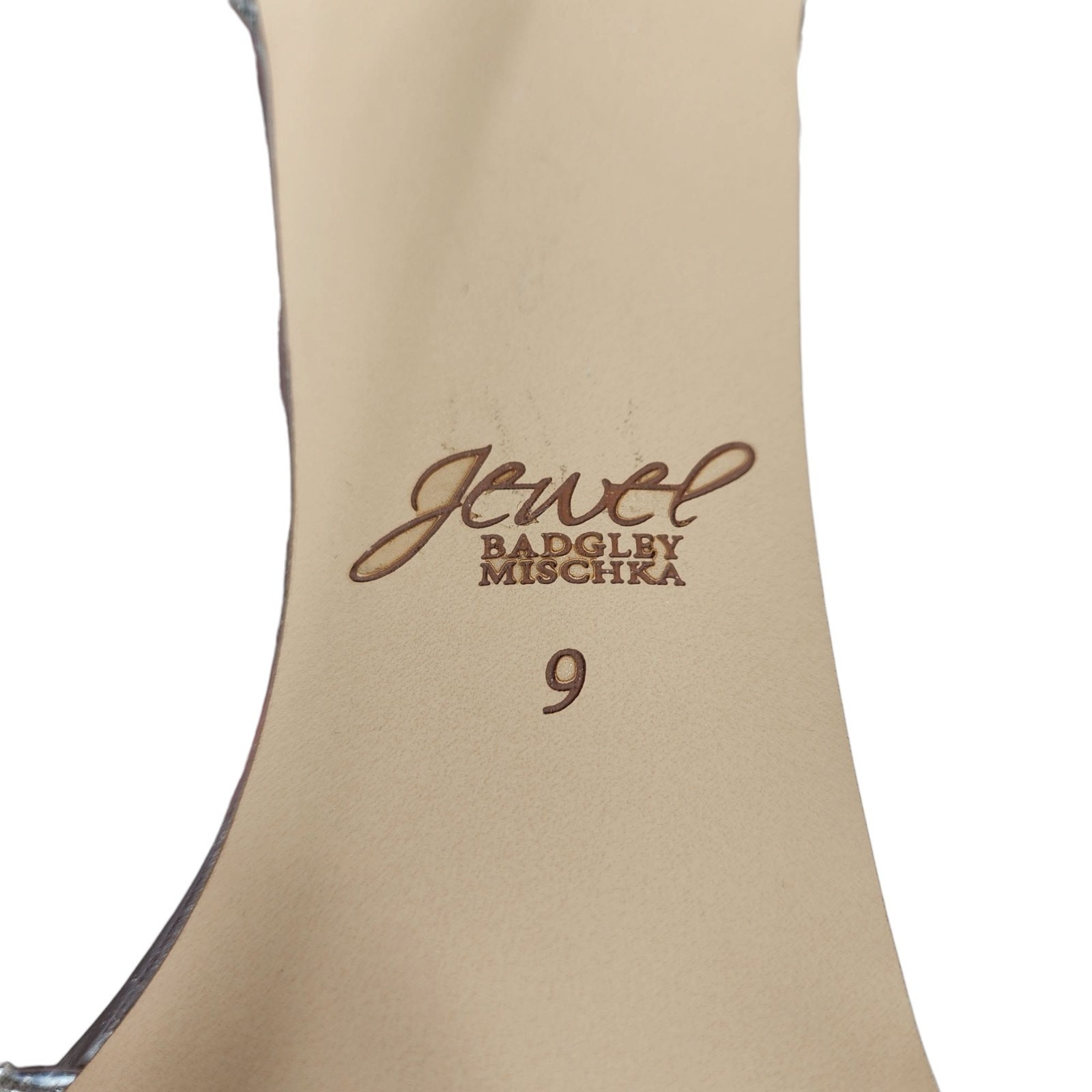 Badgley Mischka Graciela Heel Sz 9 Embellished Jewel T Strap Ankle Sandal Silver