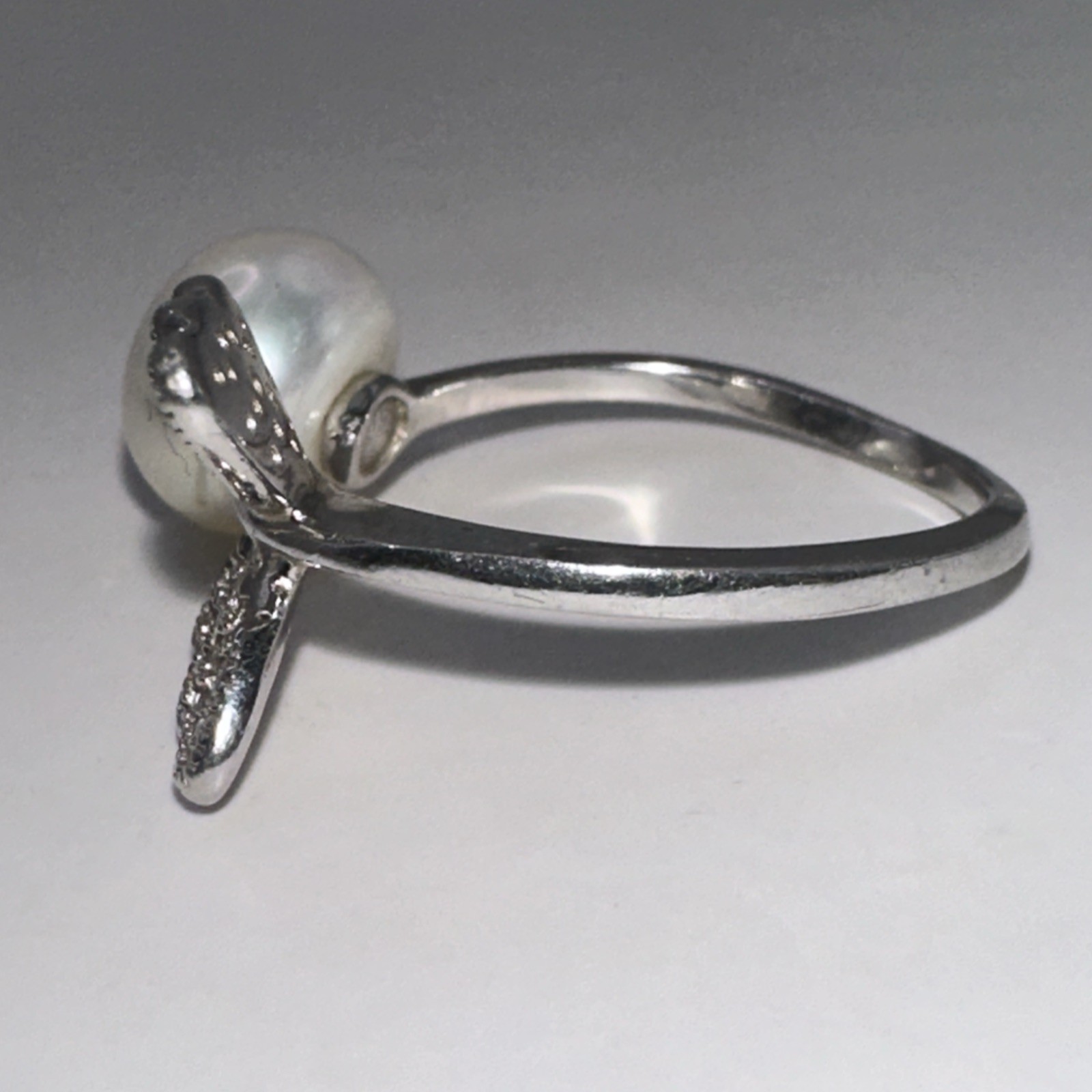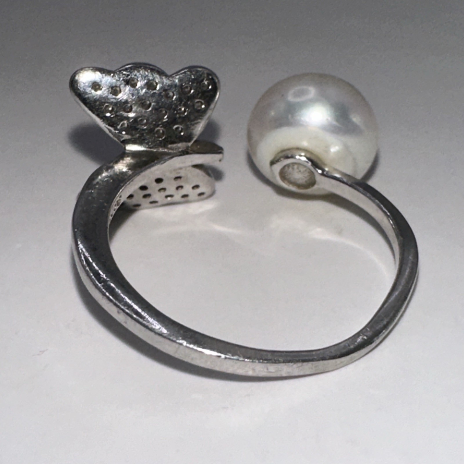 как выглядит FW Pearl White Stone Butterfly Design Bypass Sterling Ring Size 6.5 2.85g фото