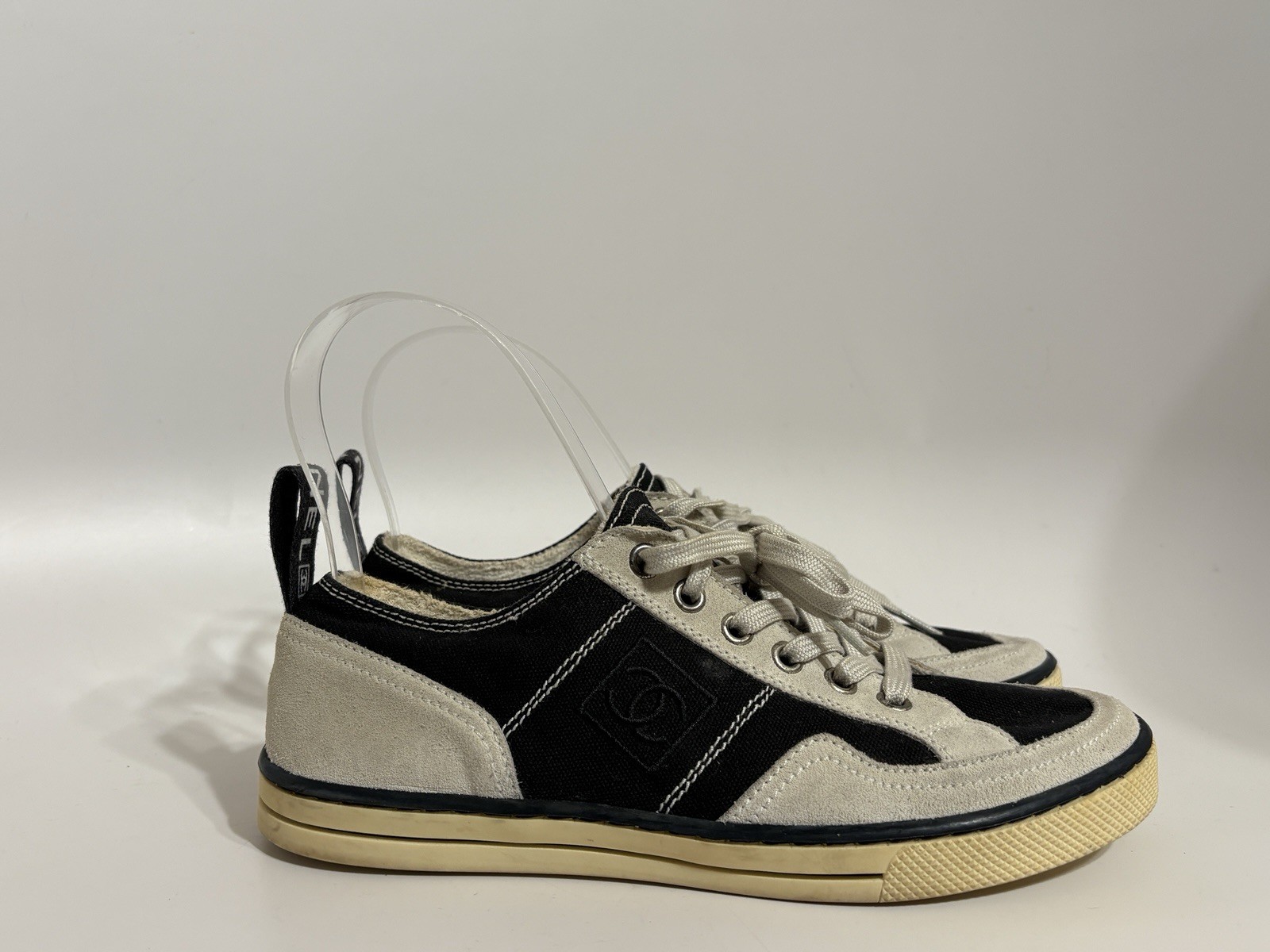 Vtg Chanel Ivory Suede CC Logo Sneakers 36