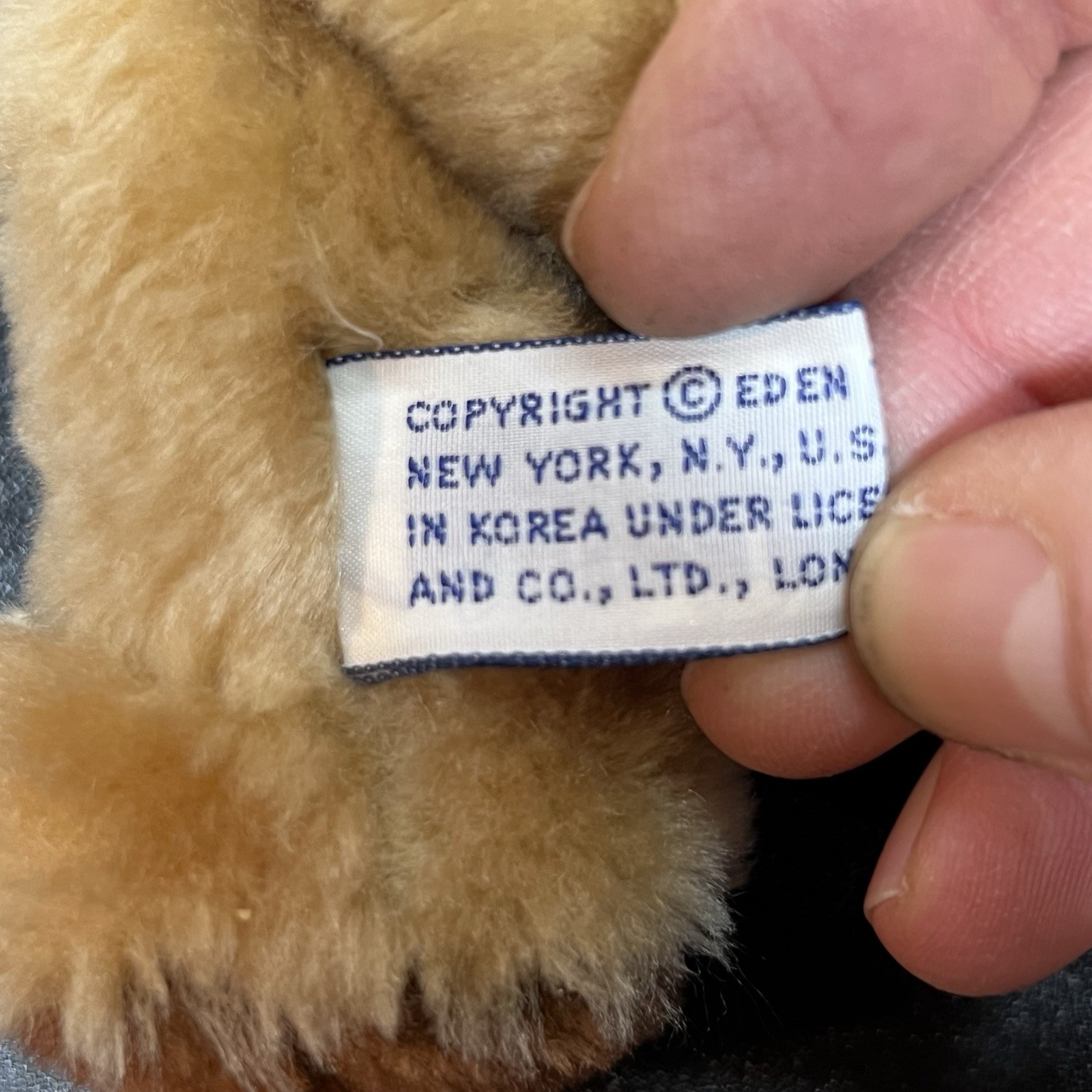 • VTG Eden Toys 10" Paddington Bear Plush "Please Read to this" blue sweatshirt