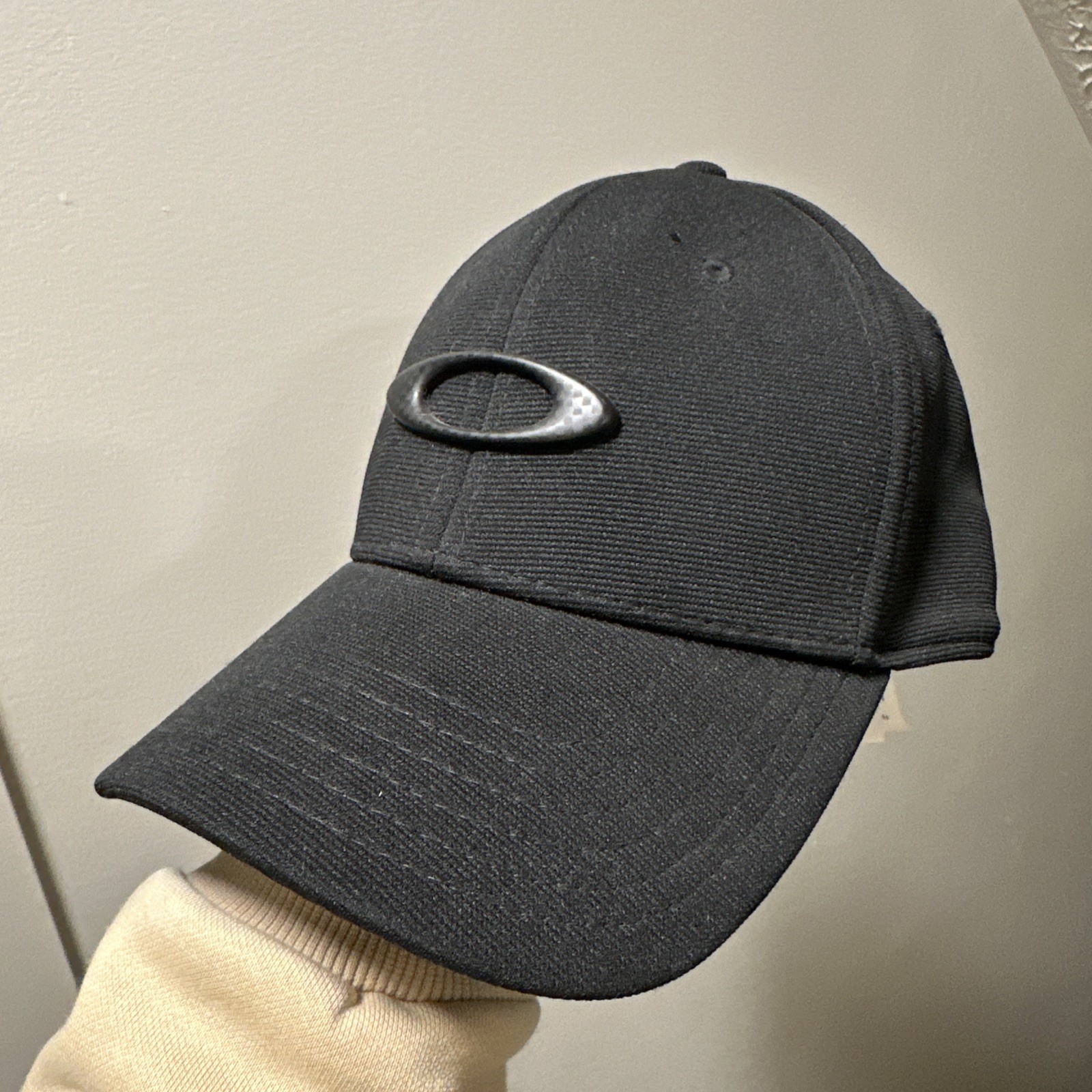 OAKLEY 911545 TINCAN Men's Carbon Fiber Ellipse Logo Black Stretch Fit Hat Cap