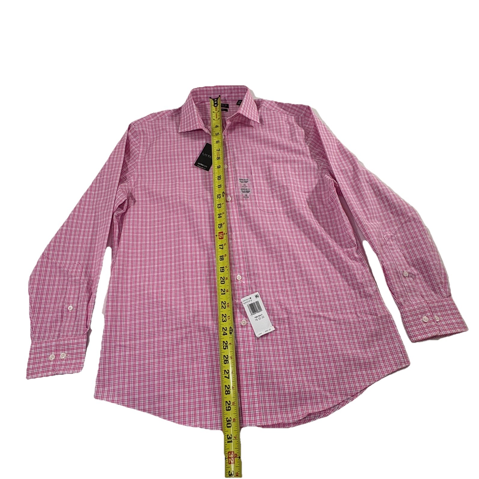 как выглядит Lauren Ralph Lauren Dress Shirt Mens 16 32/33 Large Ultraflex Pink Check NWT фото