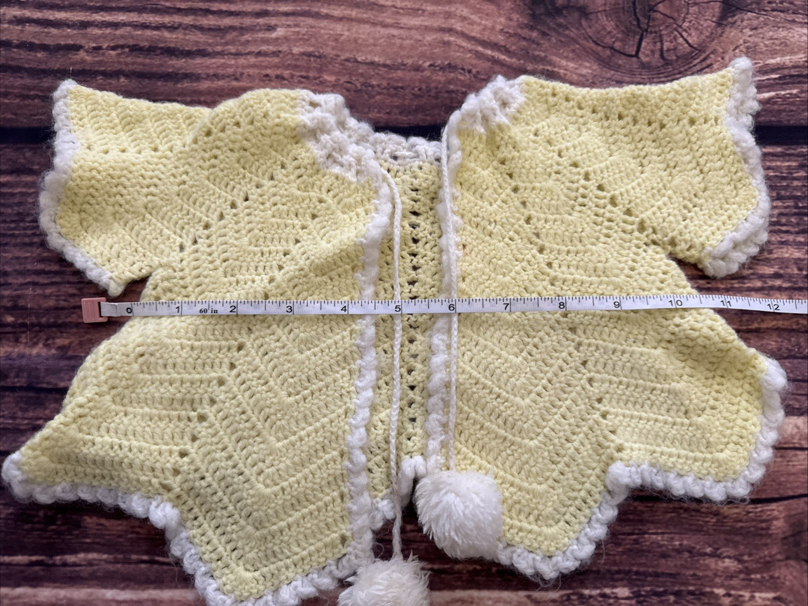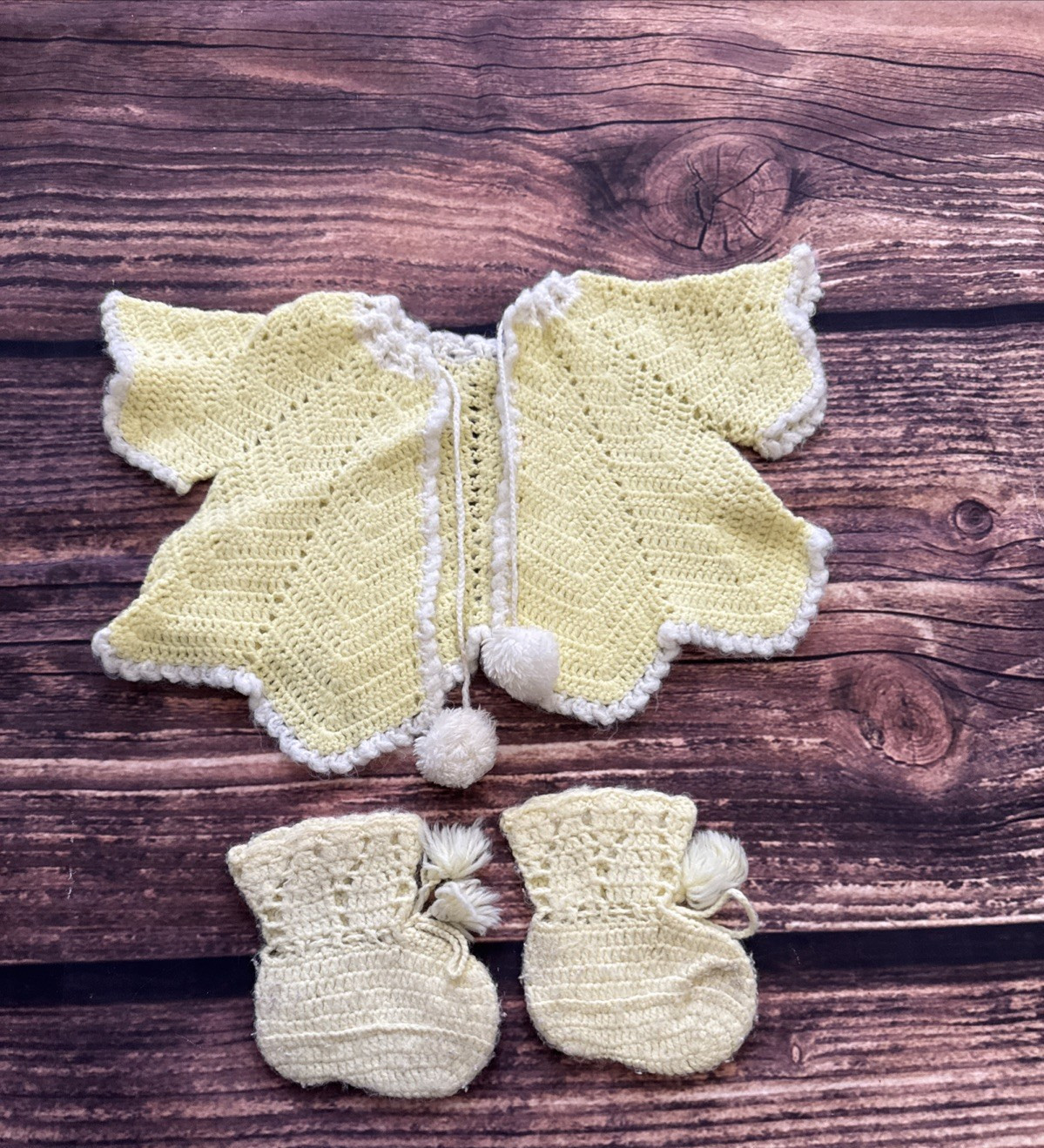 Vintage Knitted Baby Sweater Yellow Hat And Booties
