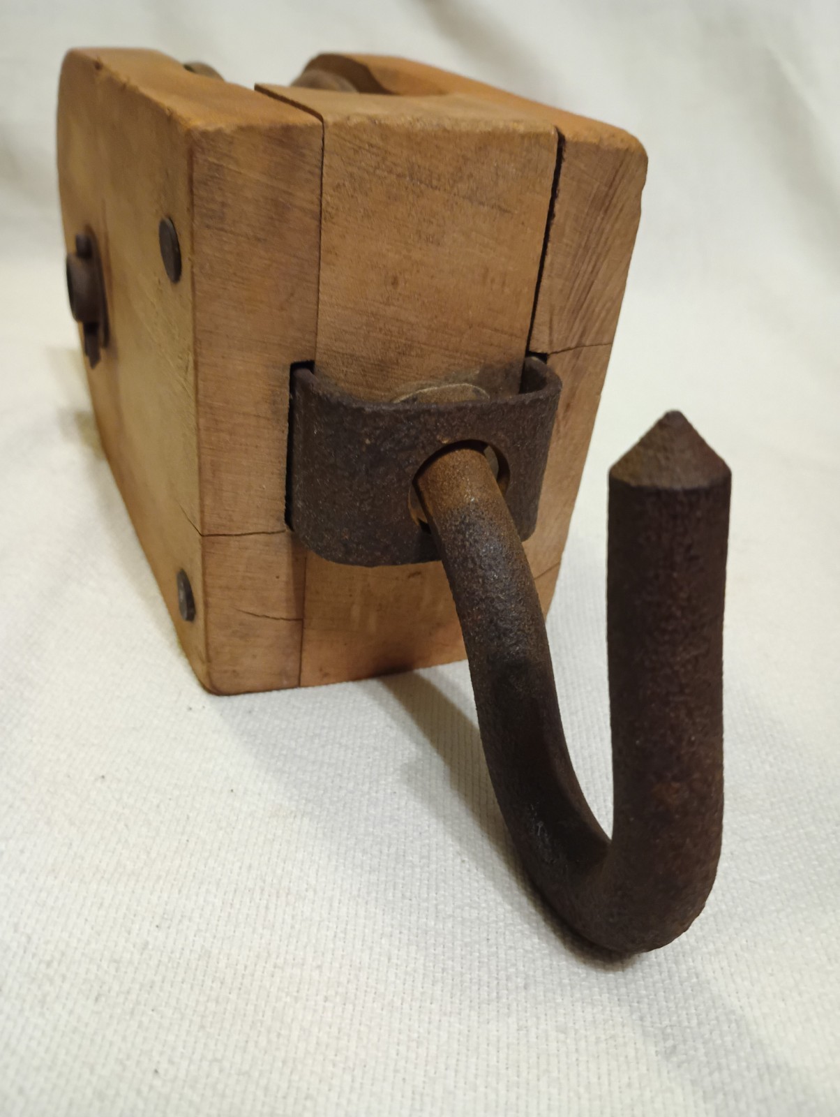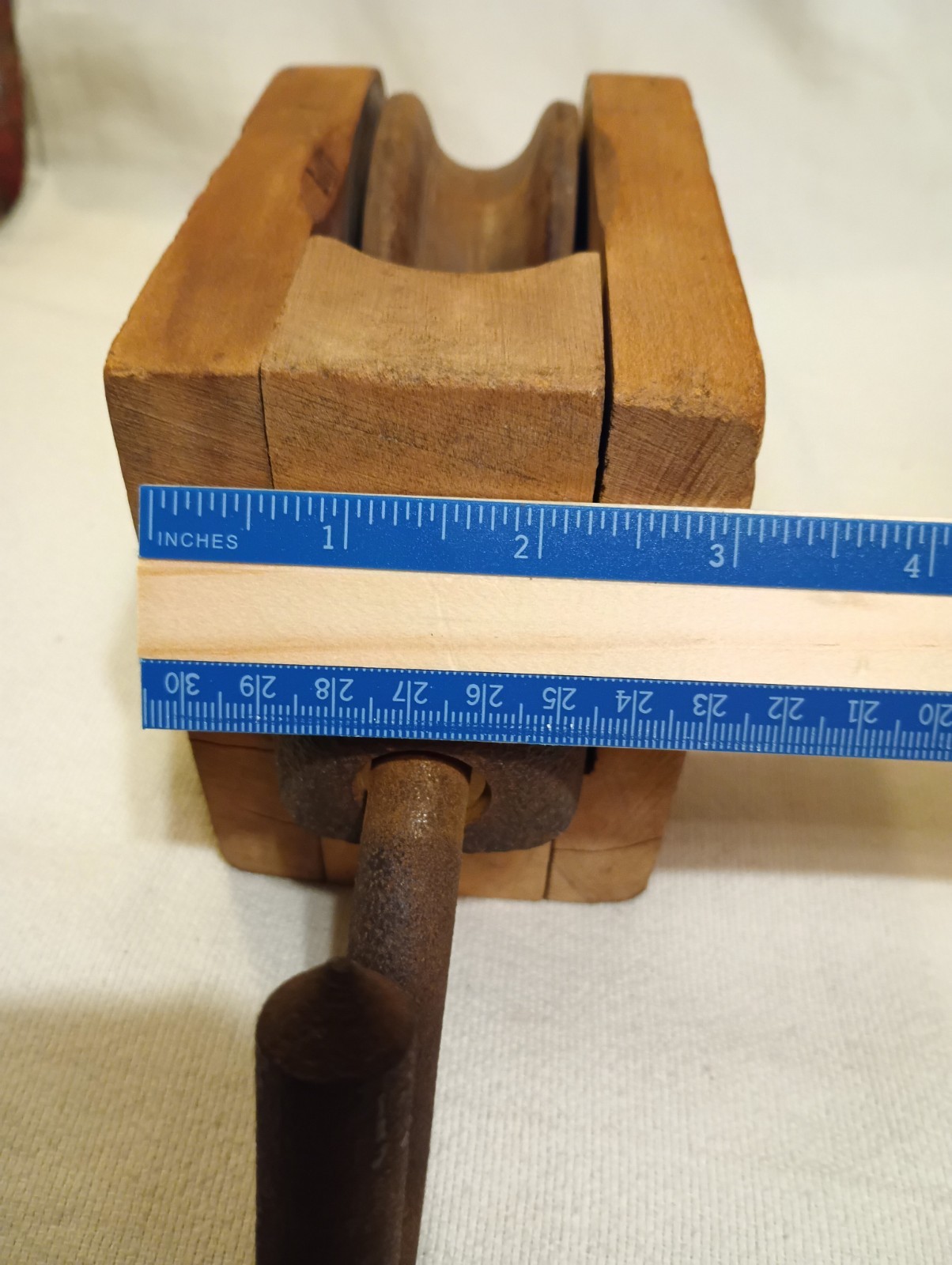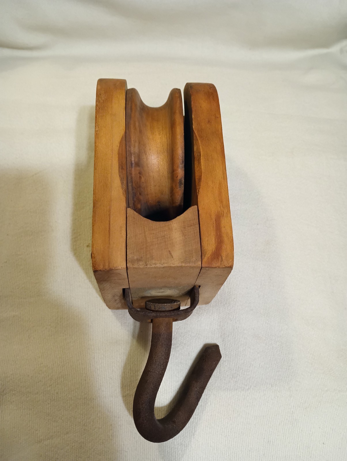 как выглядит Vintage Wood Block And Tackle Pulley With Cast Iron Hook 10" Barn Find фото