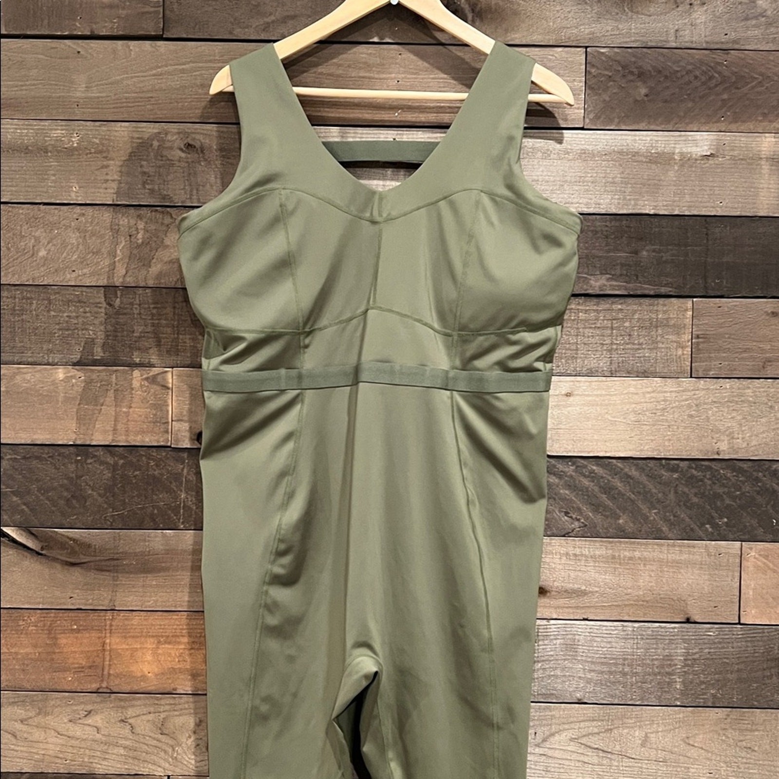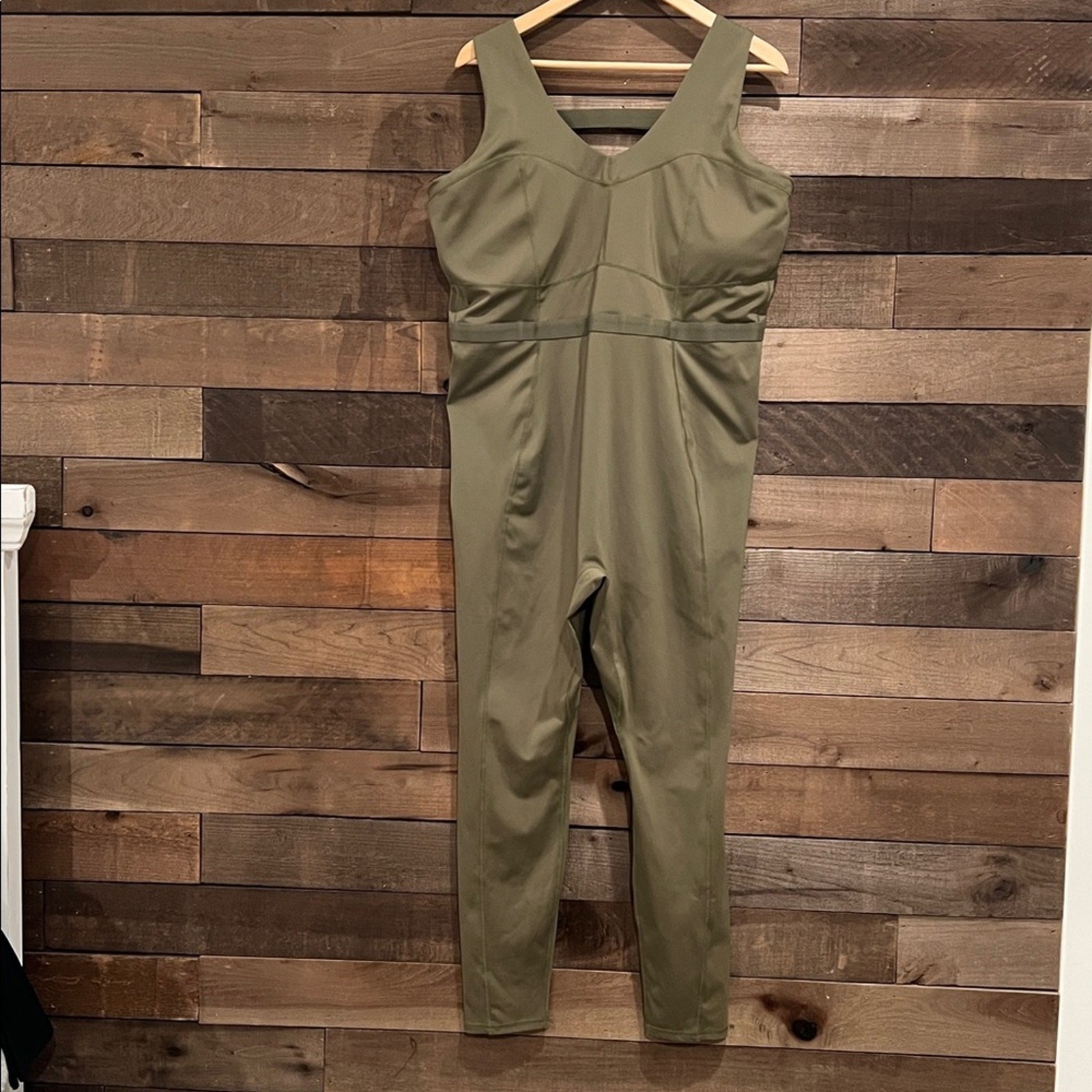 как выглядит Fabletics Womens Motion365 Jumpsuit Romper Catsuit in Dark Moss Green фото