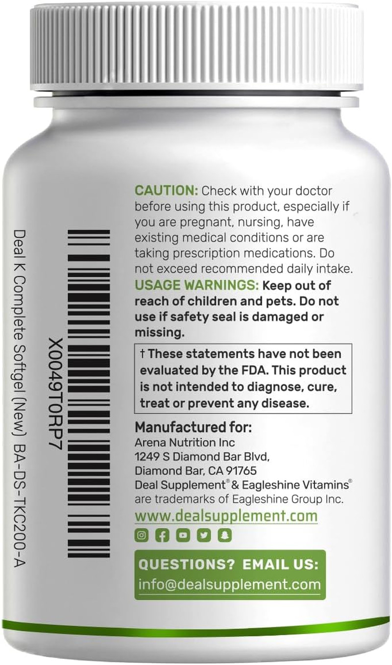 Vitamin K Complete - 240 Coconut Oil Softgels High Potency Vitamin K2 MK-7 an